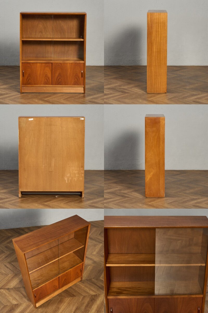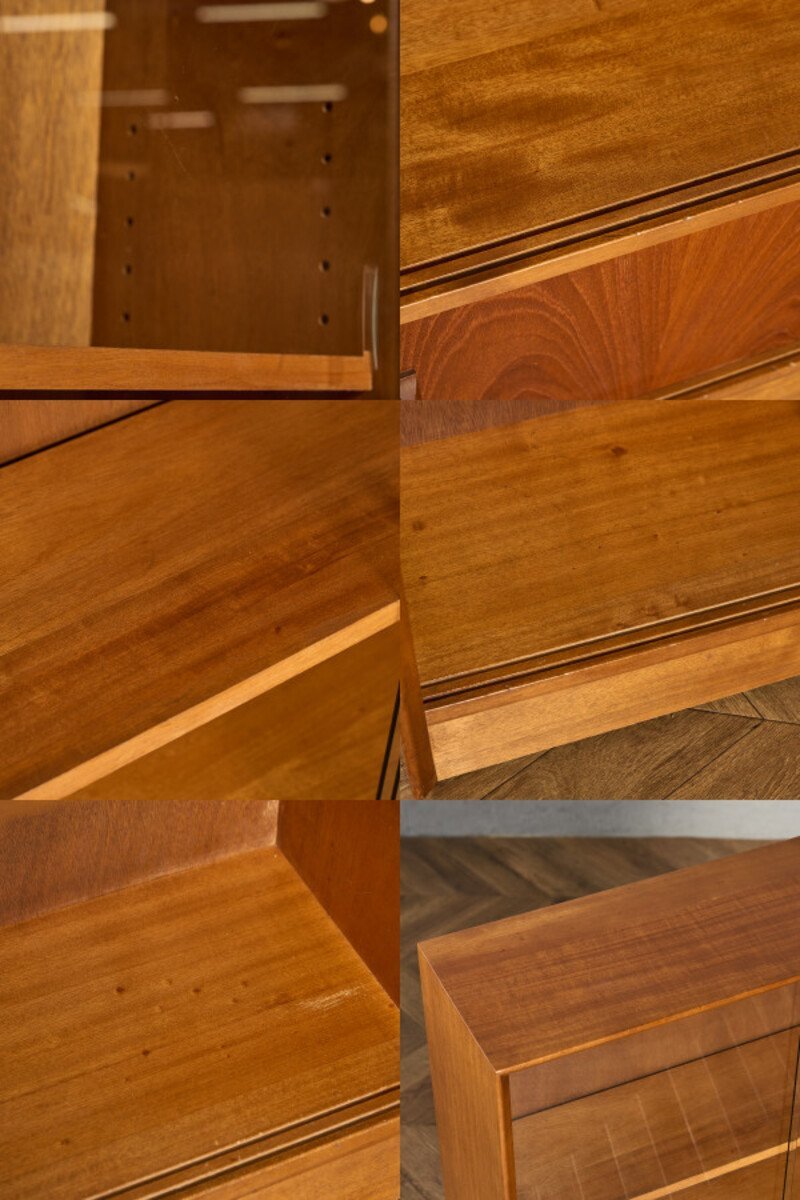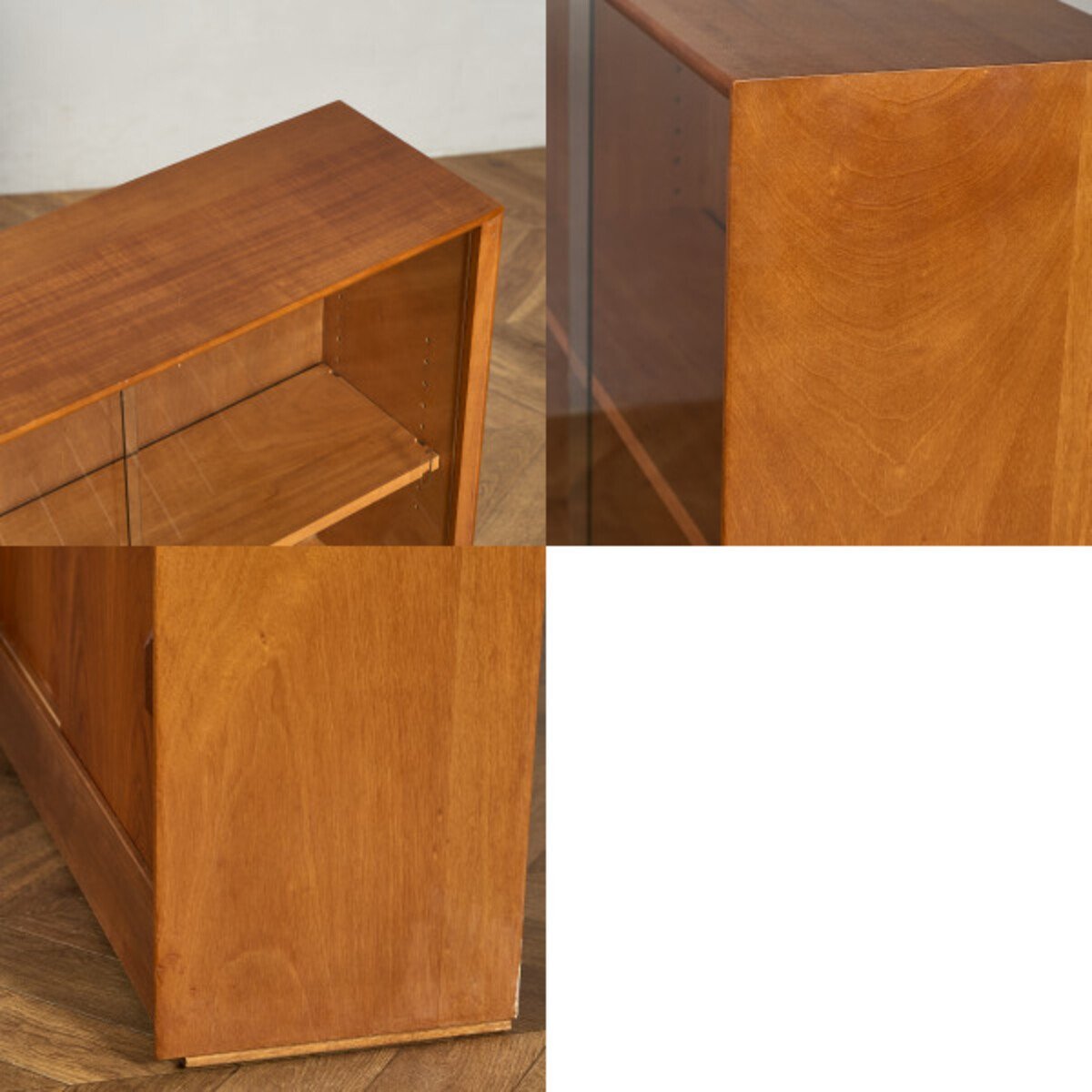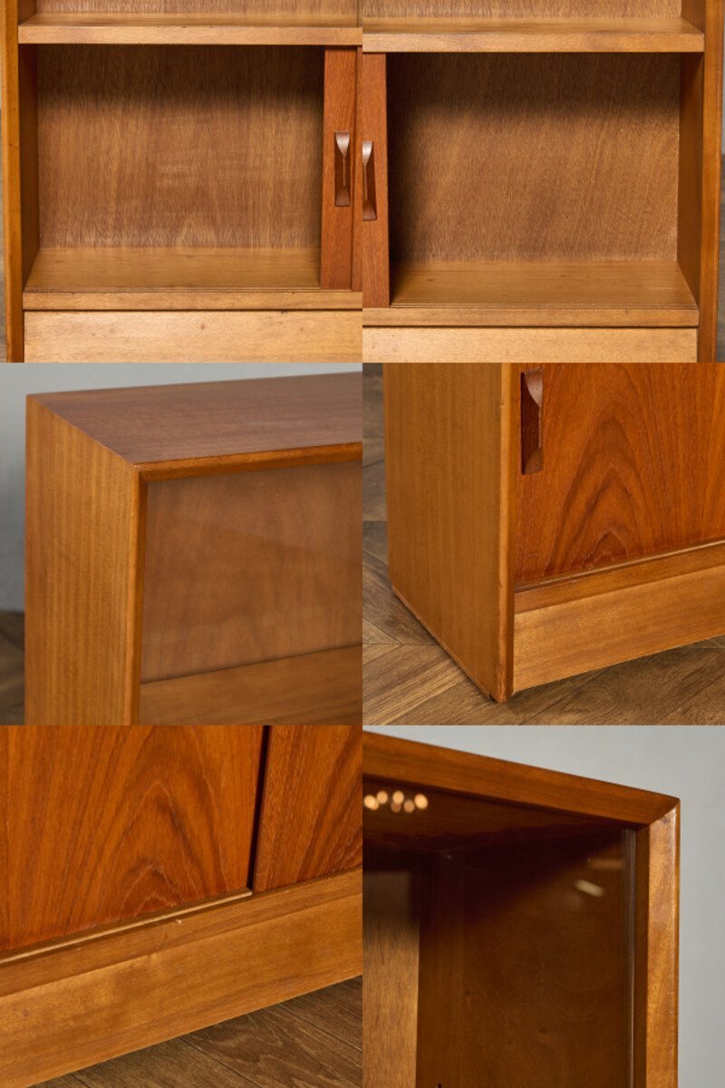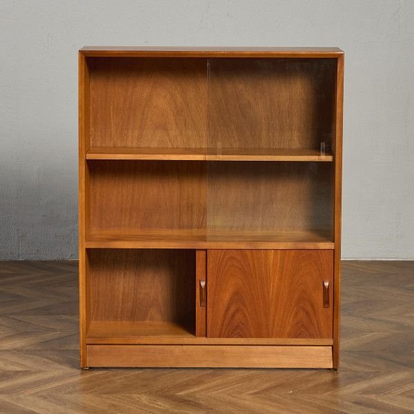 ミッドセンチュリー期にデザインされた、英国メーカー Herbert E. Gibbs(ハーバート・E・ギブス) による、ガラスキャビネットです。 書籍や食器、コレクションなど見せる収納に最適な薄型タイプです。温かみのある褐色の木肌が印象的。実用的でありながらも作り手のこだわりを感じさせる、北欧の年代物とも相性の良いヴィンテージファニチャーです。 戦後、モダンな北欧デザインが大ブームとなり、英国でも北欧スタイルの家具が作られるようになります。伝統的な家具作りの基盤があった英国の高い技術力と生産力は、高品質な家具を生み出すことを可能にしました。いち早くデンマークデザインを取り入れたG-PLAN(ジー・プラン)や、スコットランドの老舗メーカーA.H.McIntosh(A.H.マッキントッシュ)、Nathan(ネイサン)などが代表的な英国メーカーです。その他にも、北欧スタイルの優秀な家具メーカーが多数存在しました。ミッドセンチュリー期に作られた英国の北欧スタイル家具は、本場の北欧家具に負けずとも劣らない品質とデザイン性で現在でも高く評価され、近年、ますます人気が高まっています。 |