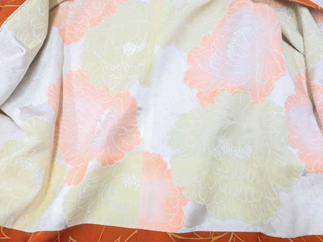 リサイクル商品ではございますが、大変良い状態のお品です。 地色は、赤茶色です。 1枚目の画像が近いお色かと思われます。 素材は正絹です。 |