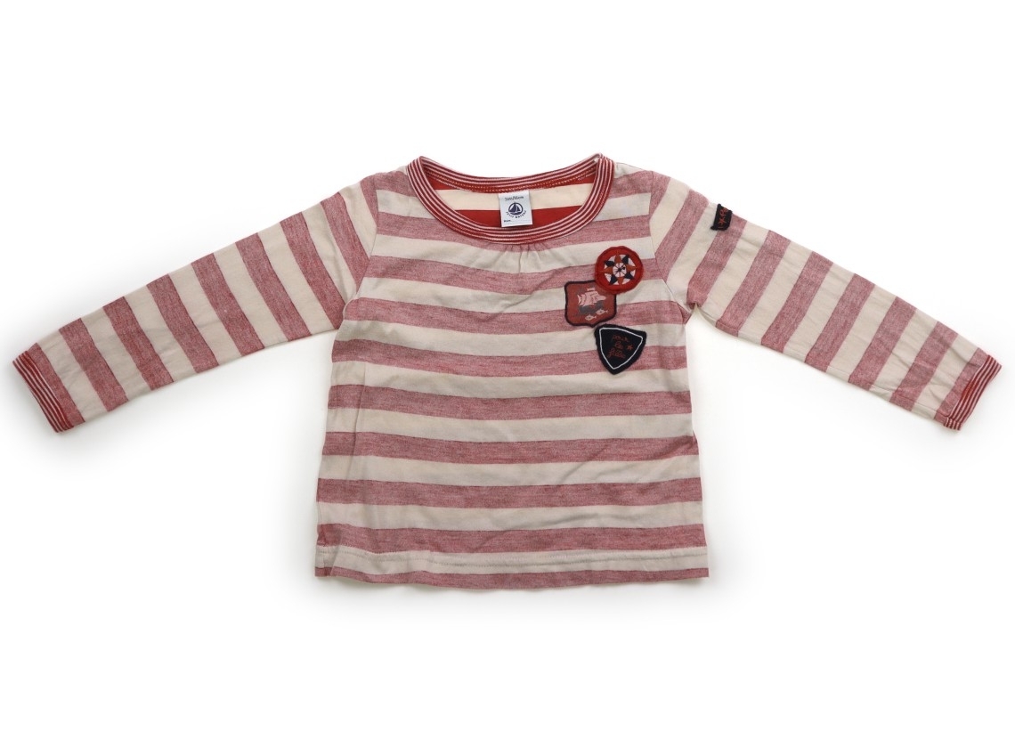 実際のサイズ表記は2ans/86cmです。カットソー生地です。右袖口に緑のシミが3つあります。やや全体に毛羽立ちがあります。