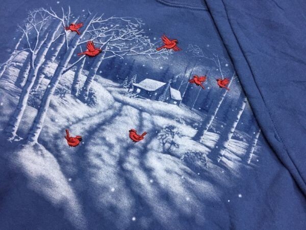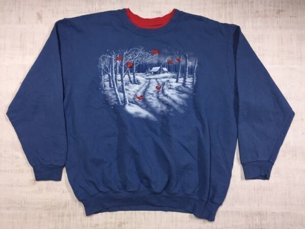 二重襟 小鳥刺繍 冬景色 ラメプリント オールド レトロ カジュアル アメカジ 品質表示タグなし