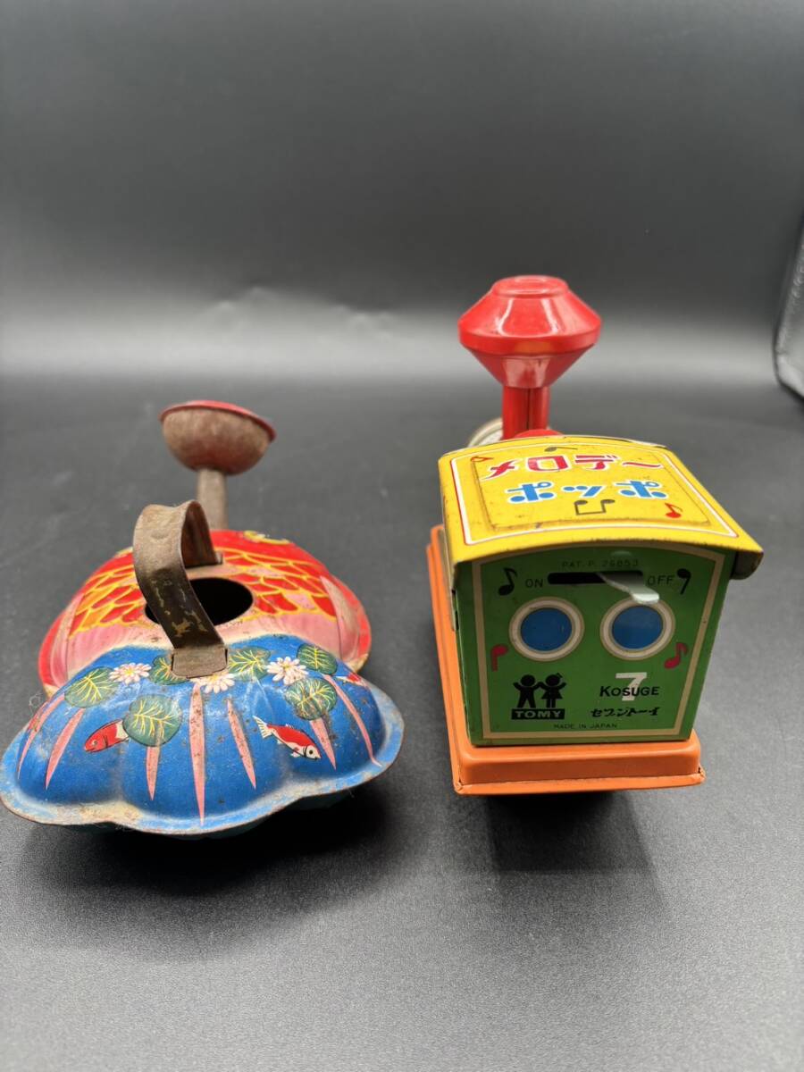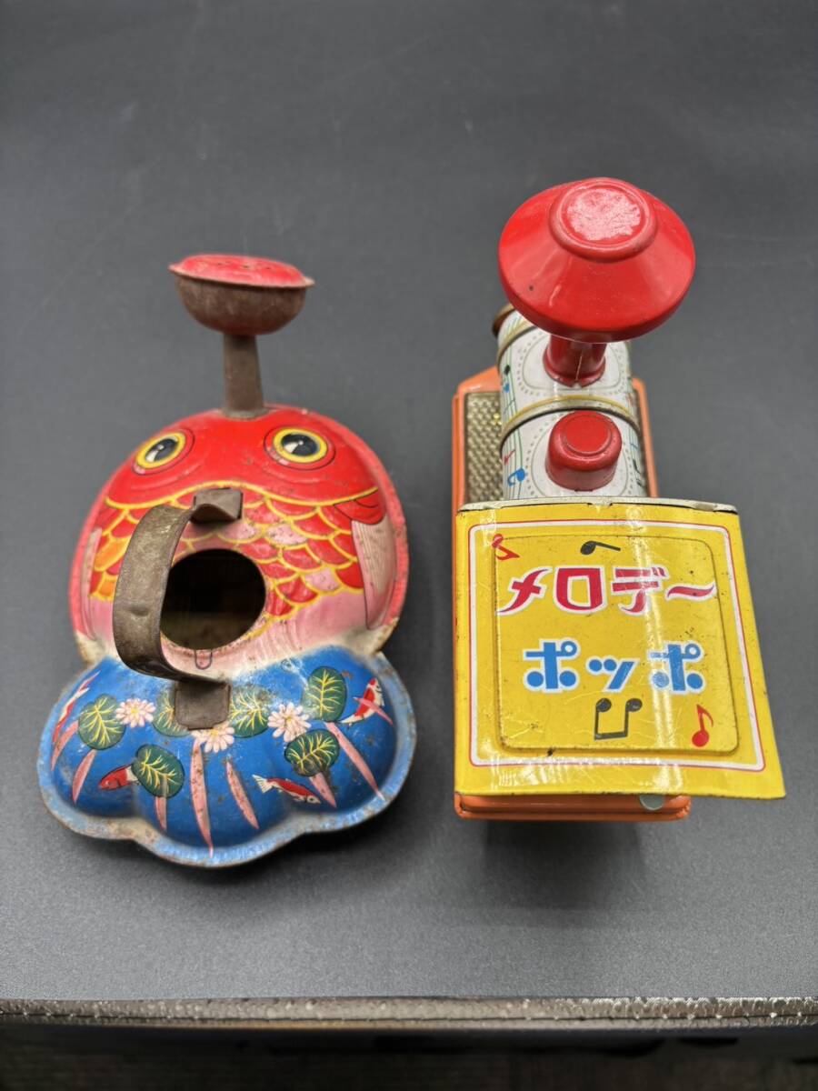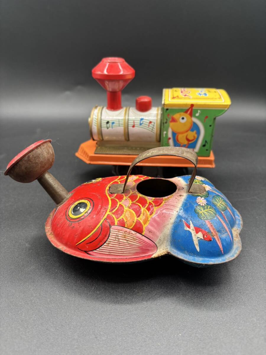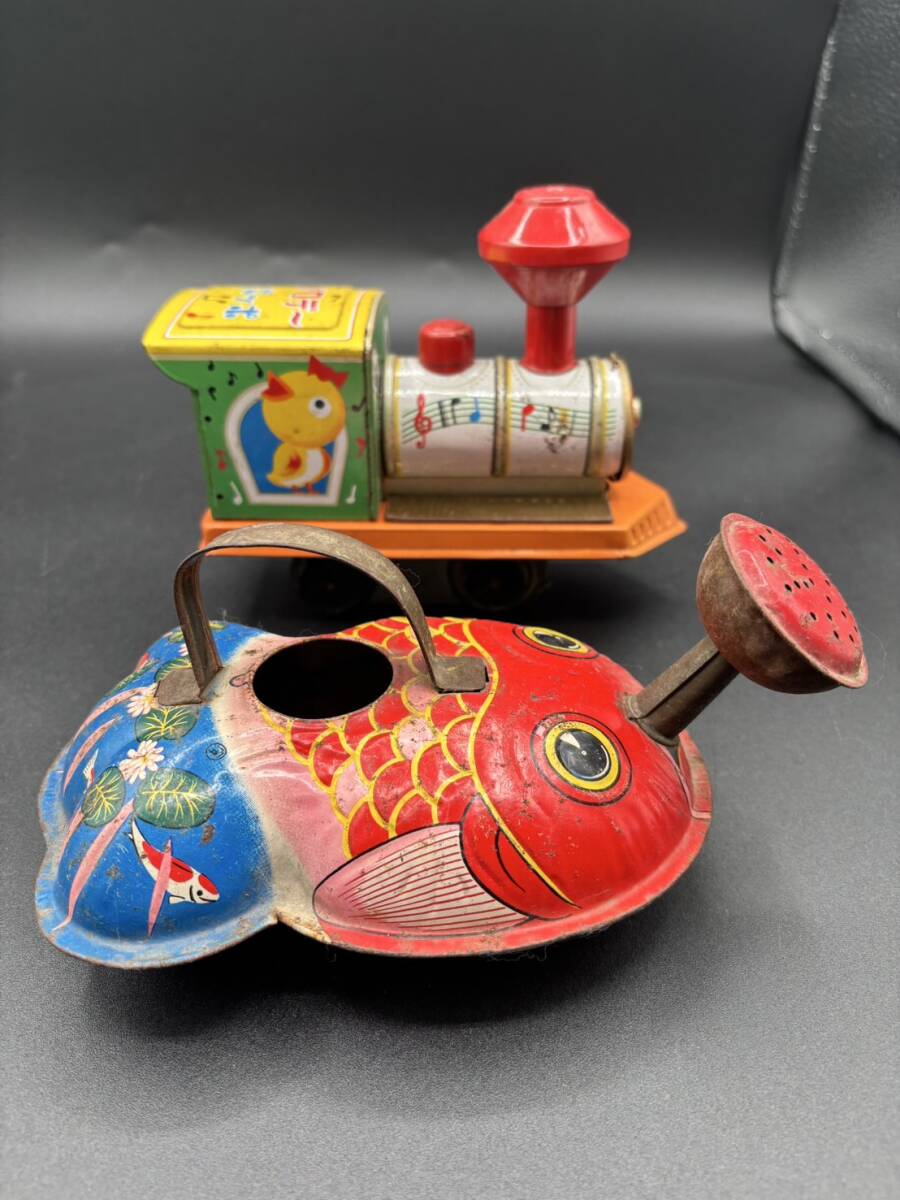 ブリキのおもちゃ 金魚型じょうろ、汽車メロデーポッポ レトロ玩具 ヴィンテージ コレクション
