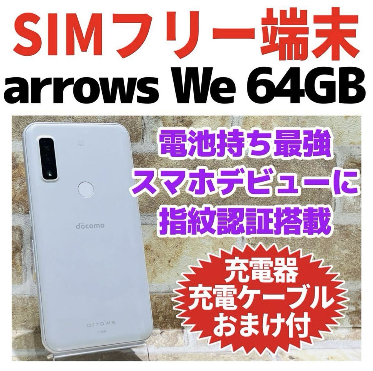 アローズ we 本体 64gb simフリー(simロック解除済)ホワイト 電池良好 【G-429】