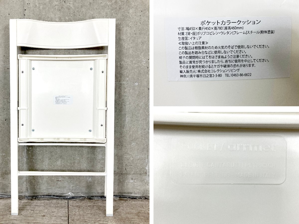 | ■折り畳むとわずか3cmの薄さを誇る『pocket』シリーズ。 こちらはカラーバリエーション豊富な北欧テイストの折りたたみチェアです。タバコケースと同じ程度の厚みなので、ほんの少しの隙間に収納が可能。 背もたれは背中にフィットするようにカーブが描かれ、座面はヒップラインに沿うように少し凹み加工がされています。座った時のホールド性は高く、折りたたみチェアでありながらも、座る人に快適感を与えます。 新品定価:¥24,200(税込み) ■色/ホワイト ■サイズ/ W450 x D450 x H780(SH460) ■重量:5.25kg ■状態/全体的に使用に伴う細かいすれ傷がございます。 雰囲気を損ねるダメージはなく、まだまだ気持ちよくお使い頂けます。 中古品ということをご理解頂き、ご入札をお願い致します。 |