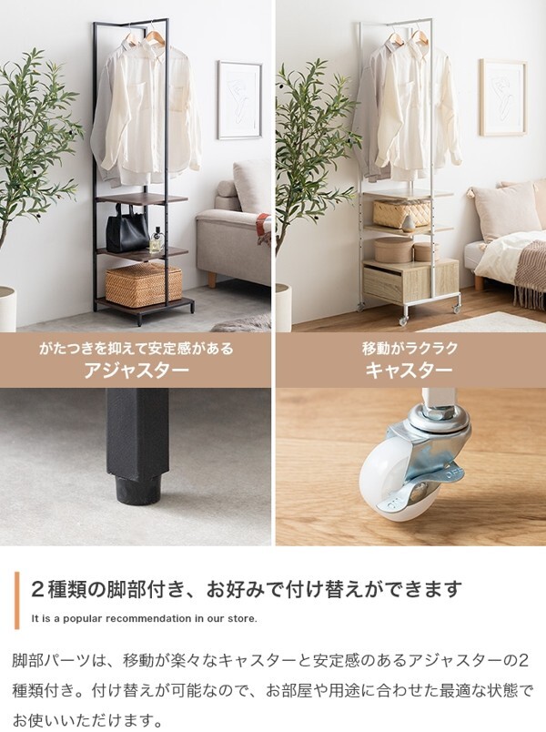 ※現在ご覧の商品ページはナチュラルのご購入ページとなります。 ヤフオクの仕様上単一ページに複数バリエーションを掲載することができませんので、他バリエーションが希望の場合は別ページでご購入お願い致します。 スリムなのに服と鞄をしっかり収納できる『Tito(ティート)』シリーズのハンガーラック。 掛けると置くを両立でき、自分好みの収納スペースが実現します。 8段階で動く可動棚とハンガーバーは服と鞄をひとまとめに収納することができ、ショート丈からロング丈までたっぷり収納可能。 また、スリムなコンパクトサイズのため、一人暮らしや限られたスペースに置きたい方にもおすすめです。 配達業者を指定いただくことはできません。 沖縄・離島に関しましては、別途配送料が必要となります。 北海道への配送も別途配送料が必要になる場合がございます。 ※別途送料が発生する場合は後ほどご連絡させていただきます。 タイミングによっては在庫切れの場合があります。
