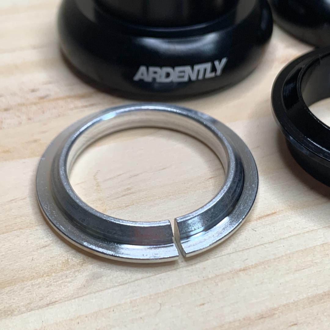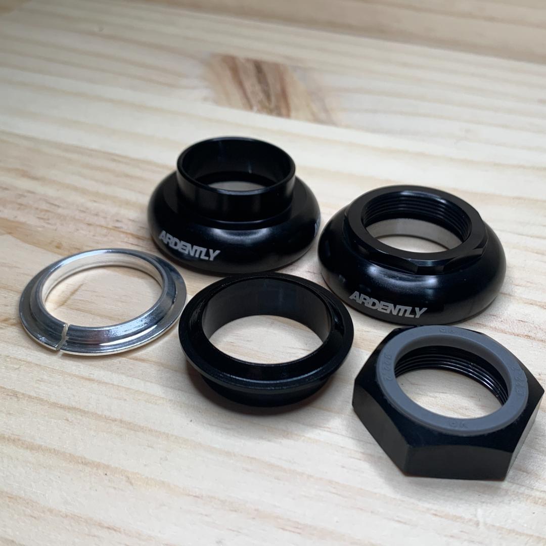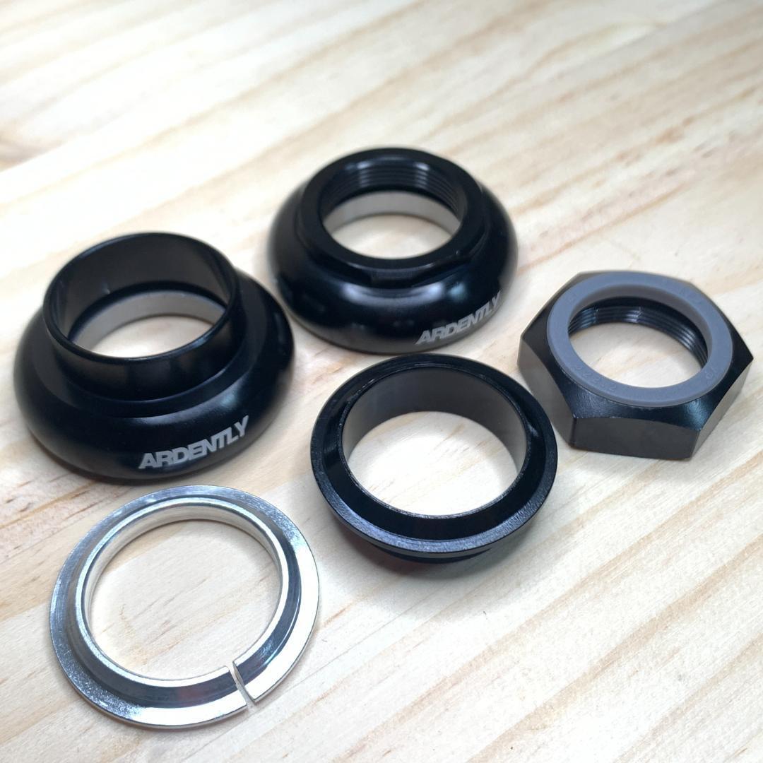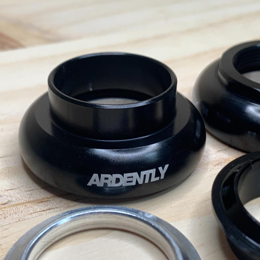 自転車のハンドリングを支える重要なパーツ、ardently(アーデントリー)製のスレッドヘッドセットです。軽量なアルミ合金製で、スムーズな回転と高い耐久性を実現します。