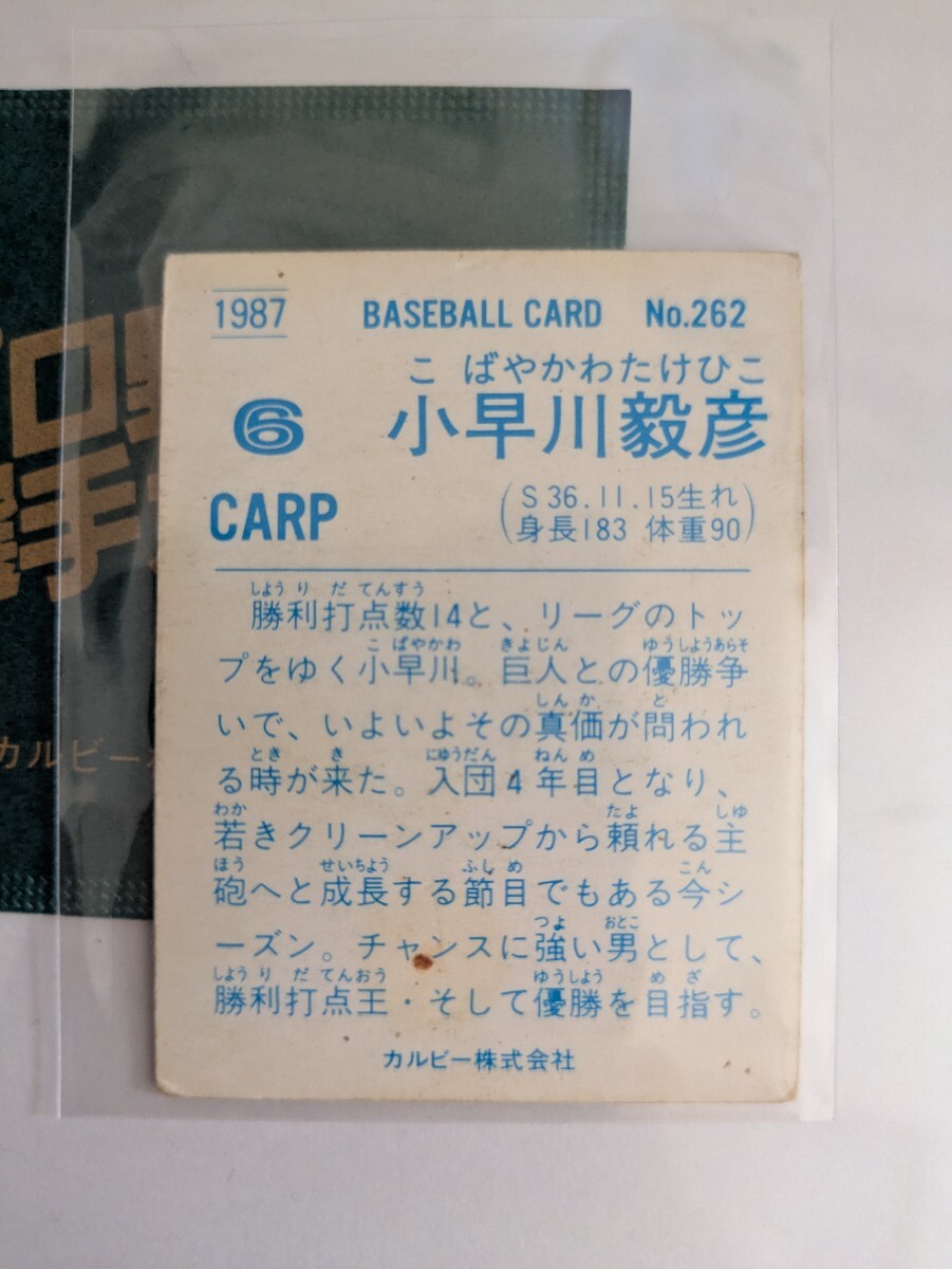 小早川毅彦 87 カルビープロ野球チップス No. 262 広島東洋カープ