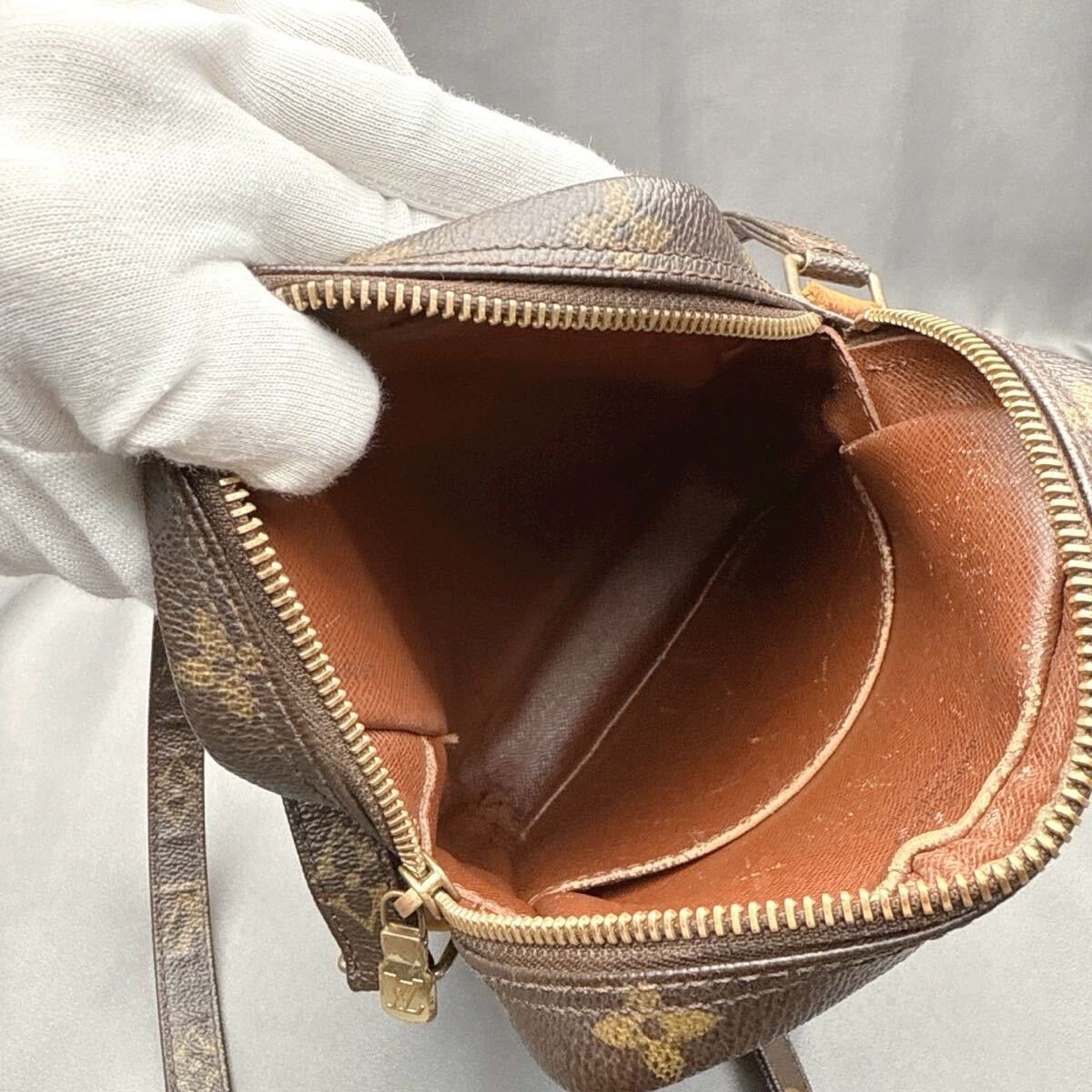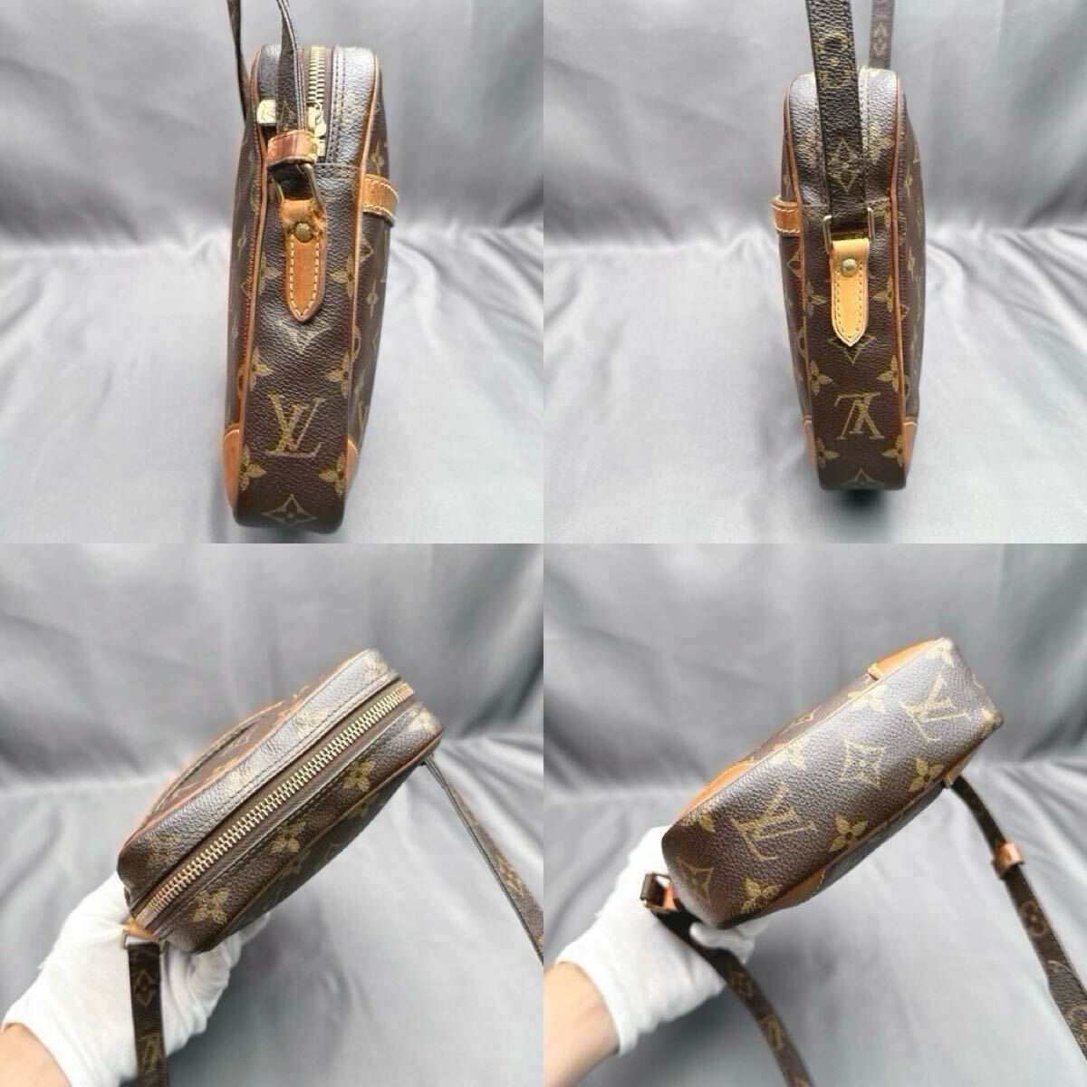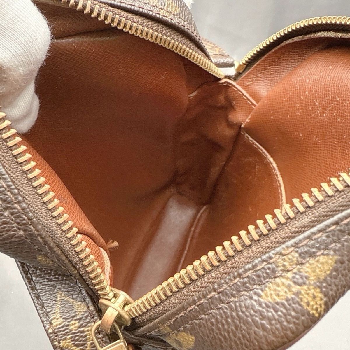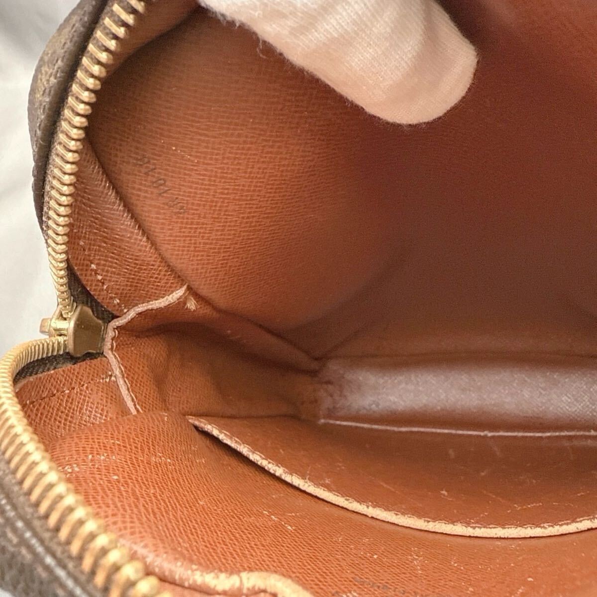 型崩れがございます。内部のポケットは使用可能ですが外ポケットの上部に一部剥がれがございます。根革が社外修理されております。もう片方の純正根革は使用に伴う劣化がございます。