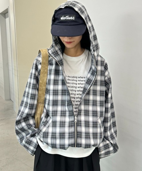 参考商品名:【UNISEX】フルジップチェックシャツフードジャケット
