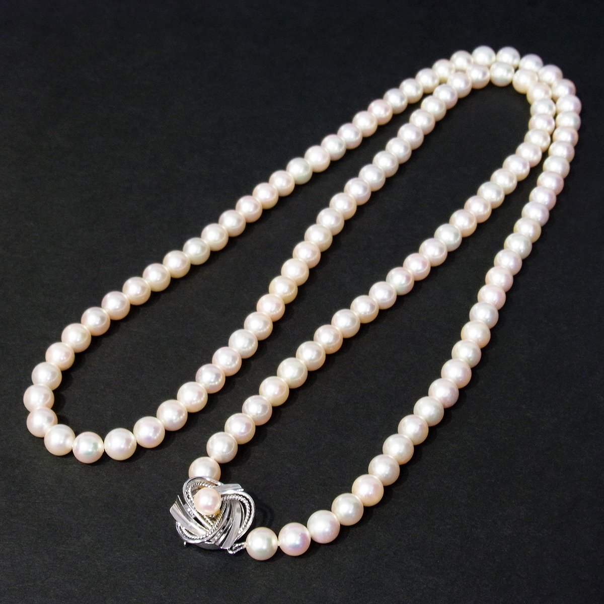 全長:約80.0cm パール径:約7.0mm(最大) 総重量:約62.6g (実寸値になりますので、多少の誤差はご容赦下さいませ。) |