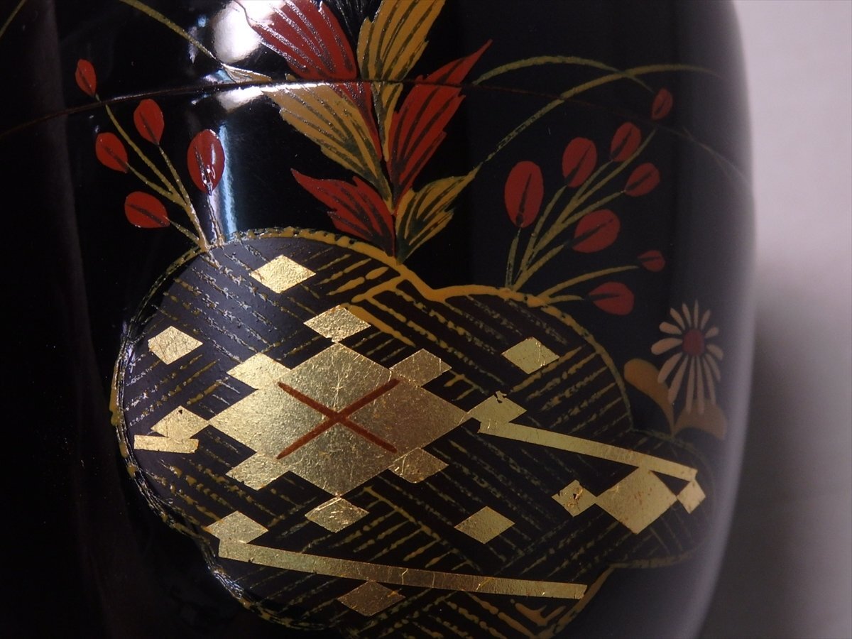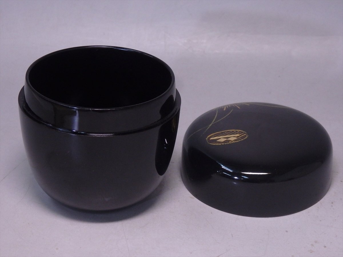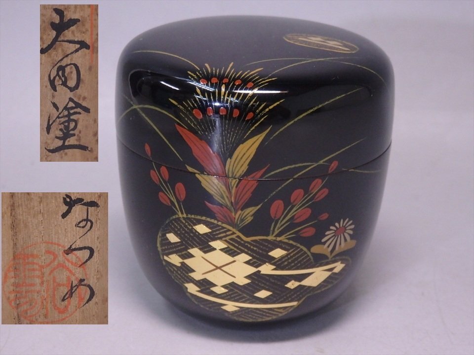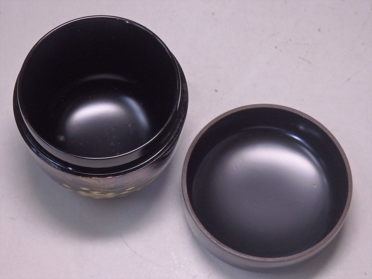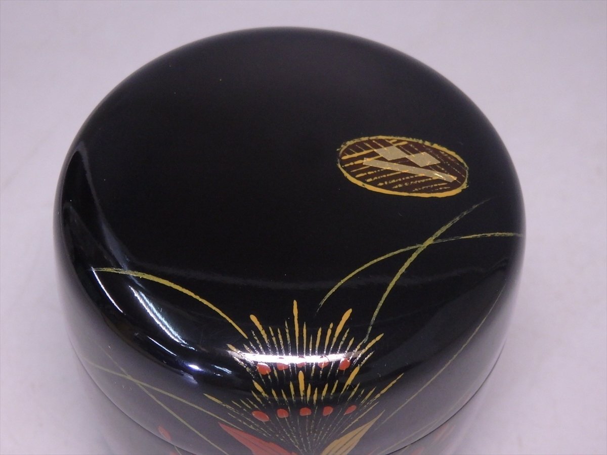 ★セール!山口県特産品【大内塗 棗 木箱入り】雲谷作 金箔 秋草 直径6.8cm 高さ7.2cm 茶道具 茶器