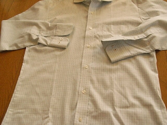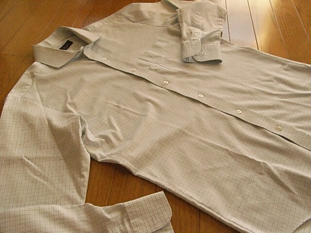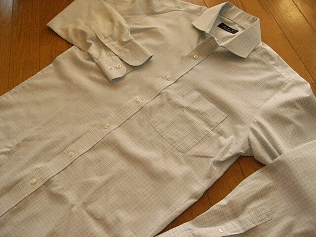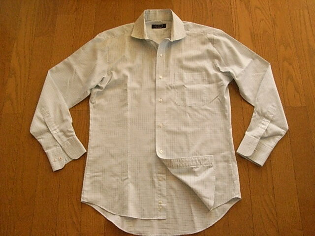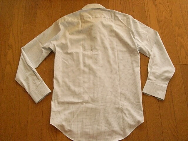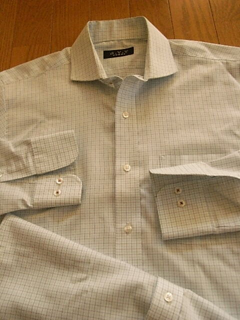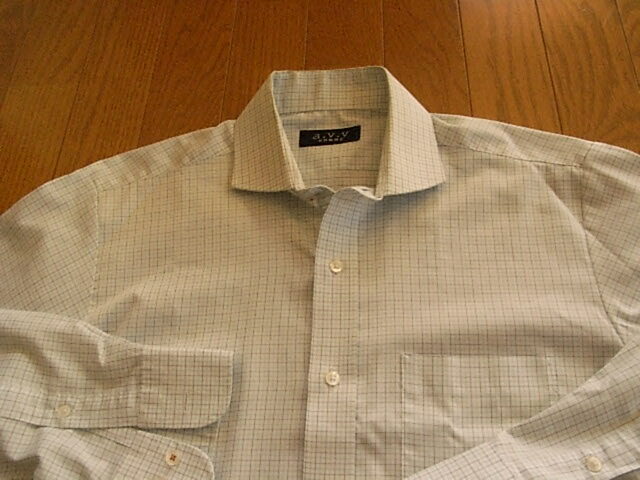 avvオム(ミッシェルクラン)かっこいい長袖ドレスシャツ ワイシャツ ホワイト&ネイビー系 チェック サイズM(39-82))