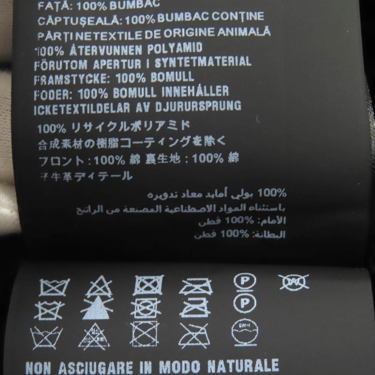 | 素材 (material) | 表地:ポリアミド100% 一部:コットン100% 裏地:コットン100% 一部:子牛革 | ||||||||||||||||