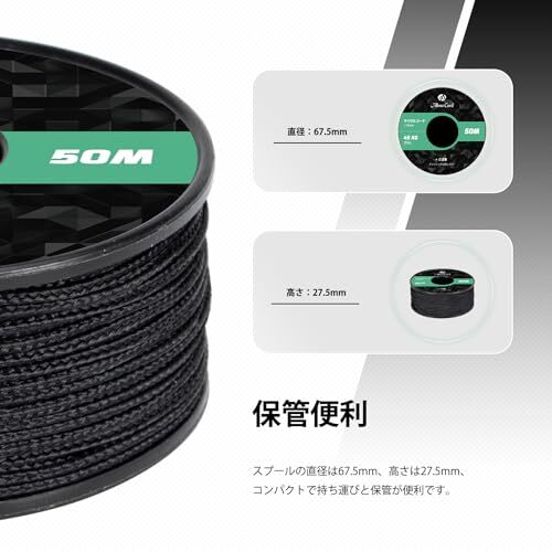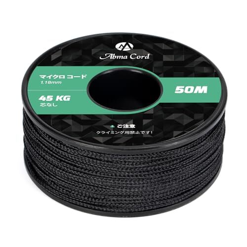 ブラック Abma Cord マイクロコード ロープ径1.18mm パラコード 50M巻 細引き 耐荷重45kg キャンプ クラフ
