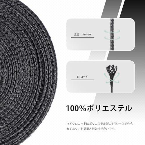 【耐久性と耐荷重】最大45kg(100ポンド)の重量をサポートできます。内芯なしで、 8/1編組外側シースは高強度と耐久性を提供します。