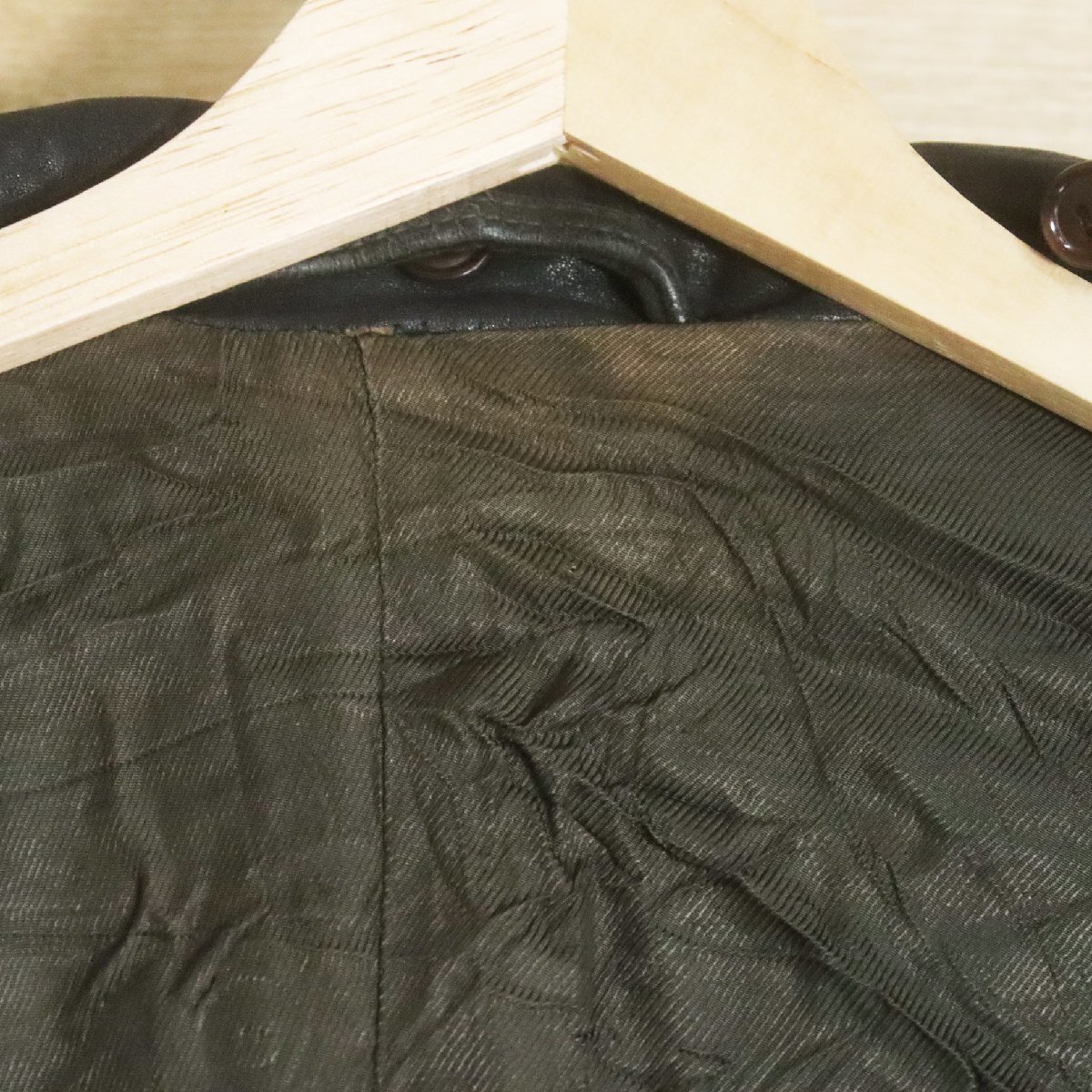 中古品です。使用感があります。腕や腹部などボディの所々に経年による擦れ、裏地首周りや裾や袖先など所々に汚れ、付属の襟パーツがありません。
