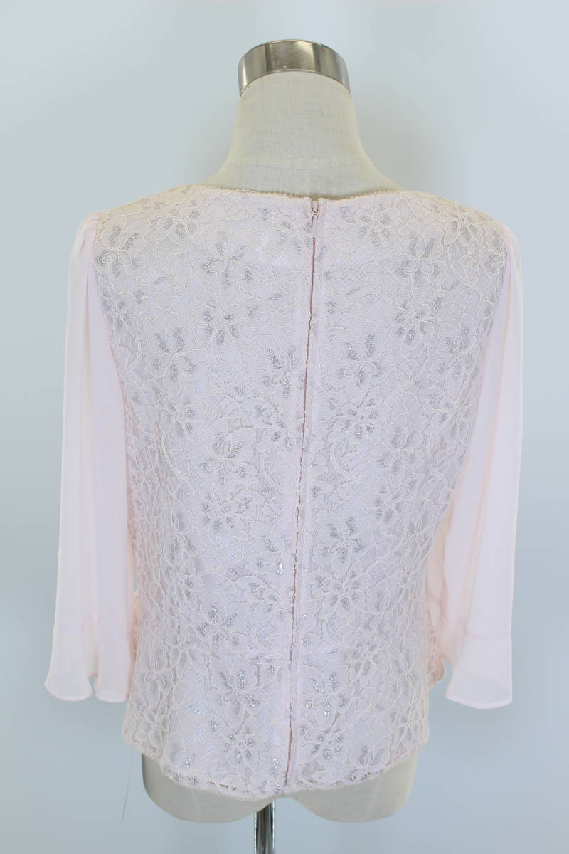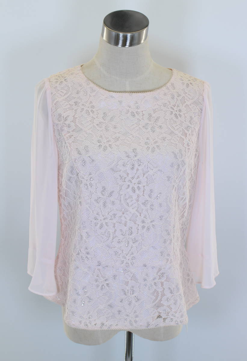 訳有 カラーフォーマル ブラウス 11号  薄いピンクに銀ラメレース