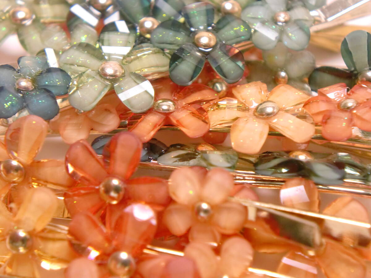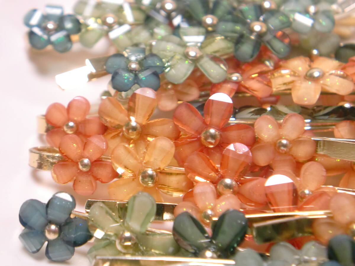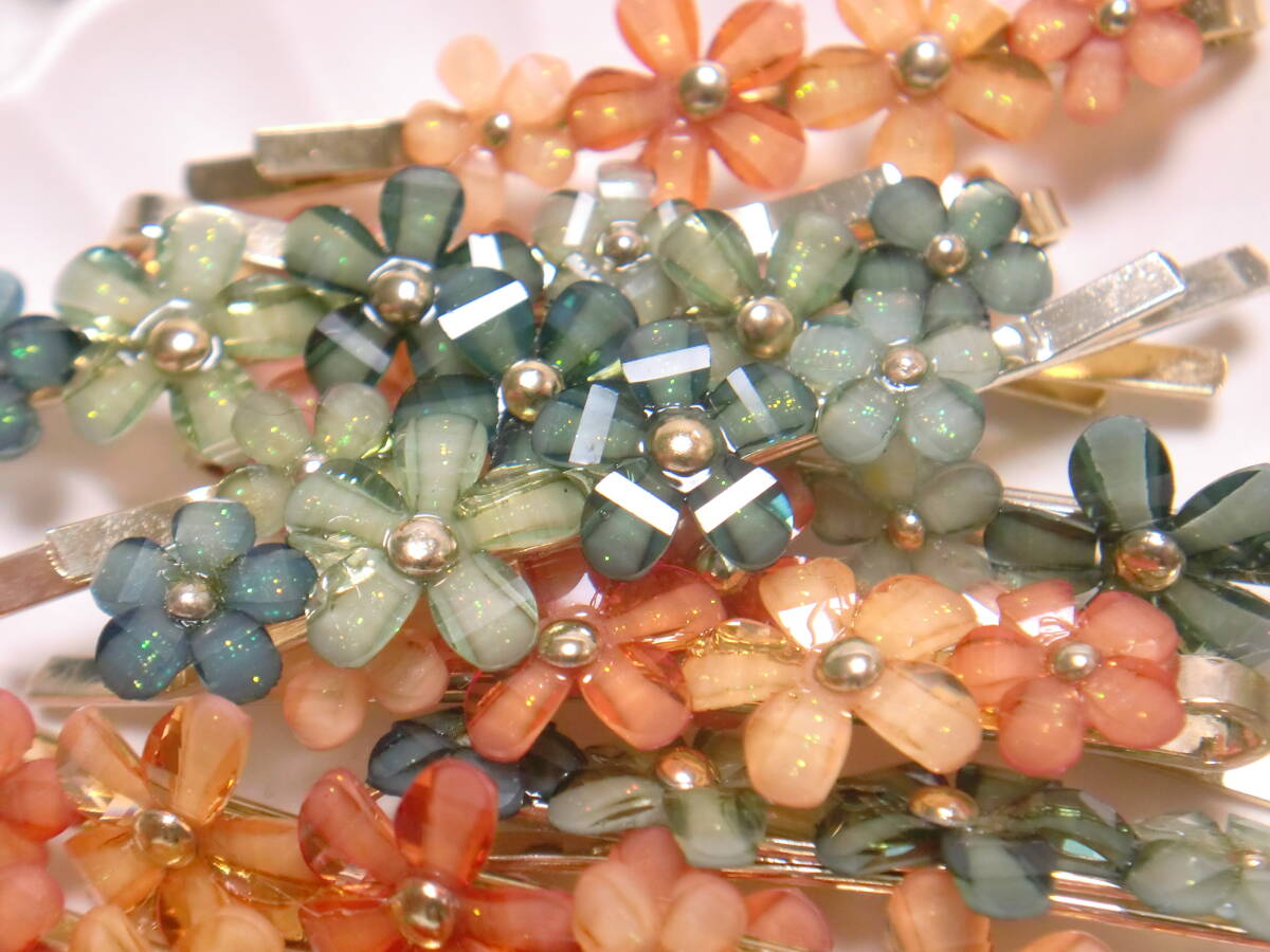 オーロララメがきれいなカット5弁花のヘアピンです!