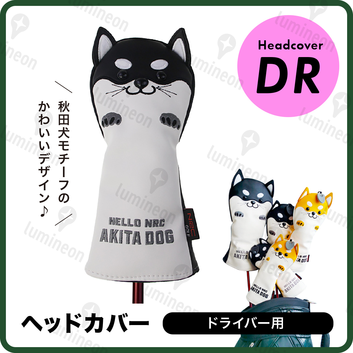ゴルフ ヘッド カバー クラブ ドライバー 秋田 犬 レザー ボア DR アニマル 黒 小物 用品 ケース プレゼント 柴犬 アクセサリー g123cb