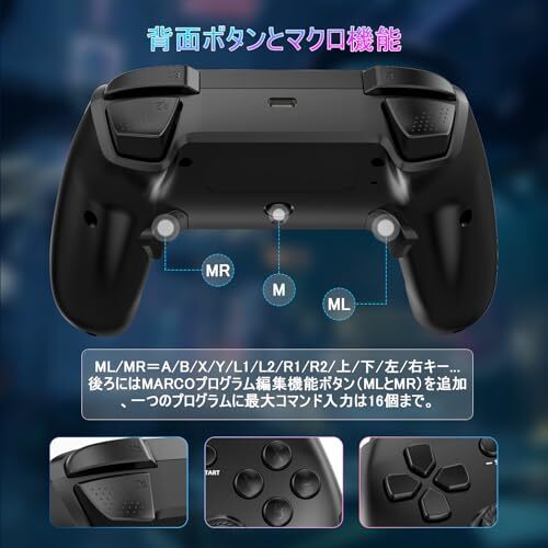 Switch/スイッチ コントローラー Sungale switch1/2対応 プロコン 自動連射機能/連射ホールド 背面ボタン付き マクロ機能 Bluetooth5.0無線接続 6軸ジャイロセンサー Switch1/2/PC/iOS13.0+/Android対応 連射コン 本体スリープ解除 日本語取扱説明書付き (ブラック&ブラック)