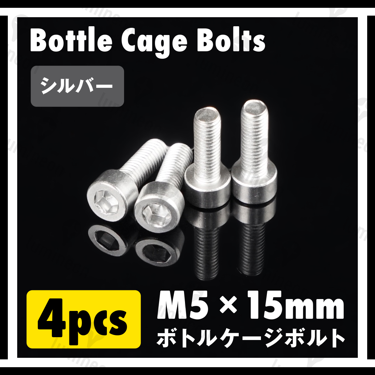ボルト M5×15mm 4本 セット アルミニウム 六角 軽量 ホルダー ボトルケージ ボルト 自転車 クロスバイク ロードバイク シルバー g060a