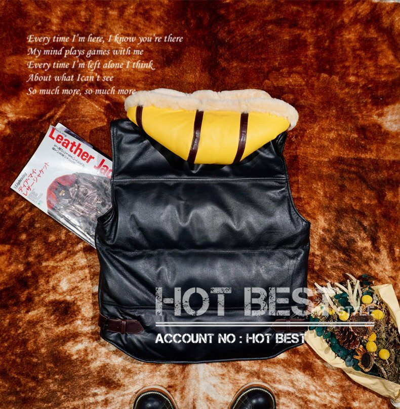 シープスキン ダウンレザーベスト レザーダウンジャケット 皮ベスト イタリアンレザー ラム 羊革 Y1217/M