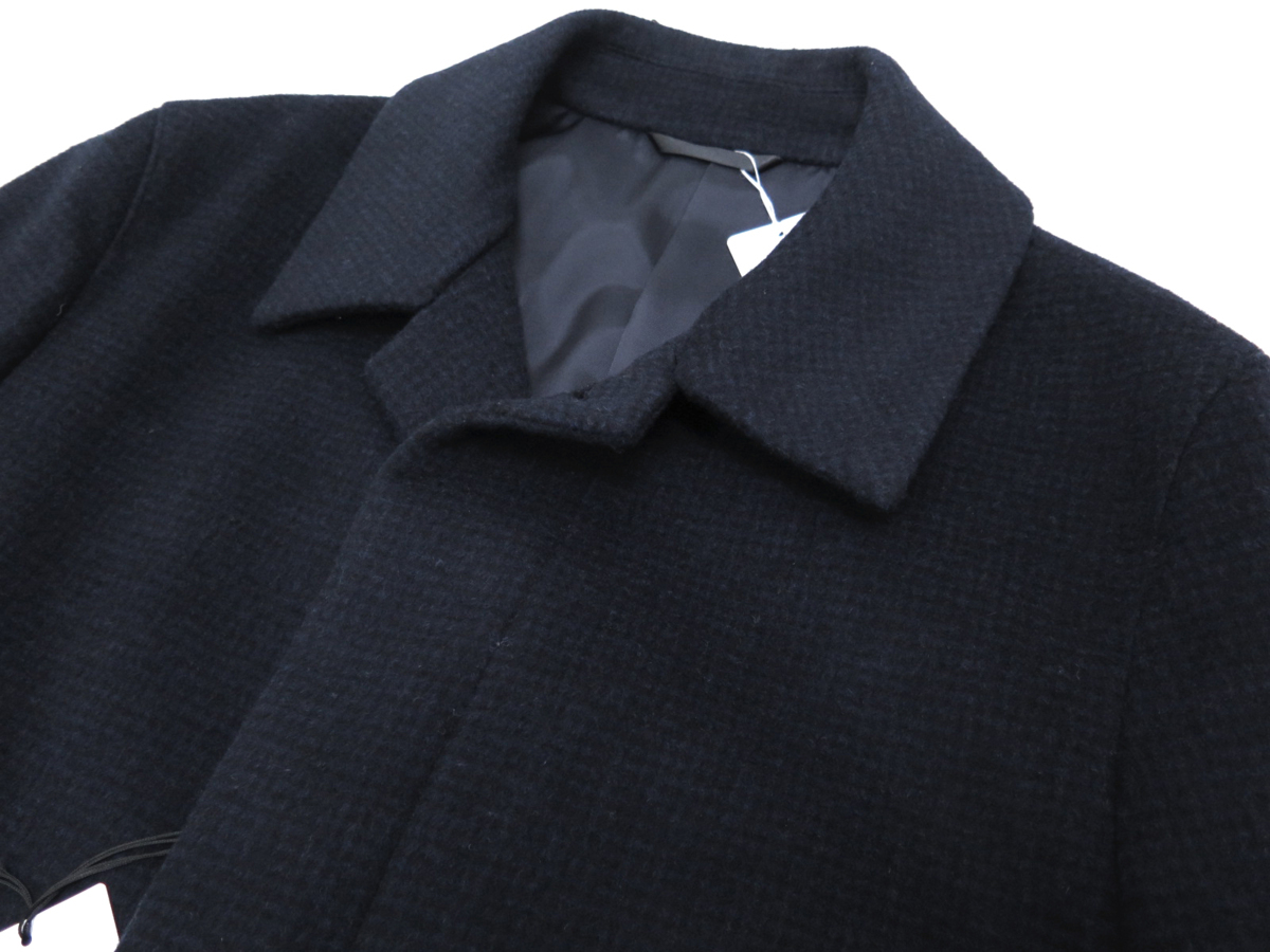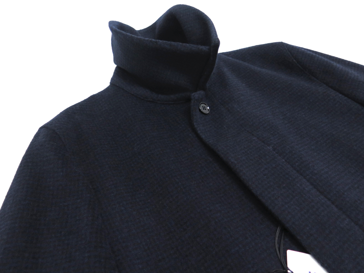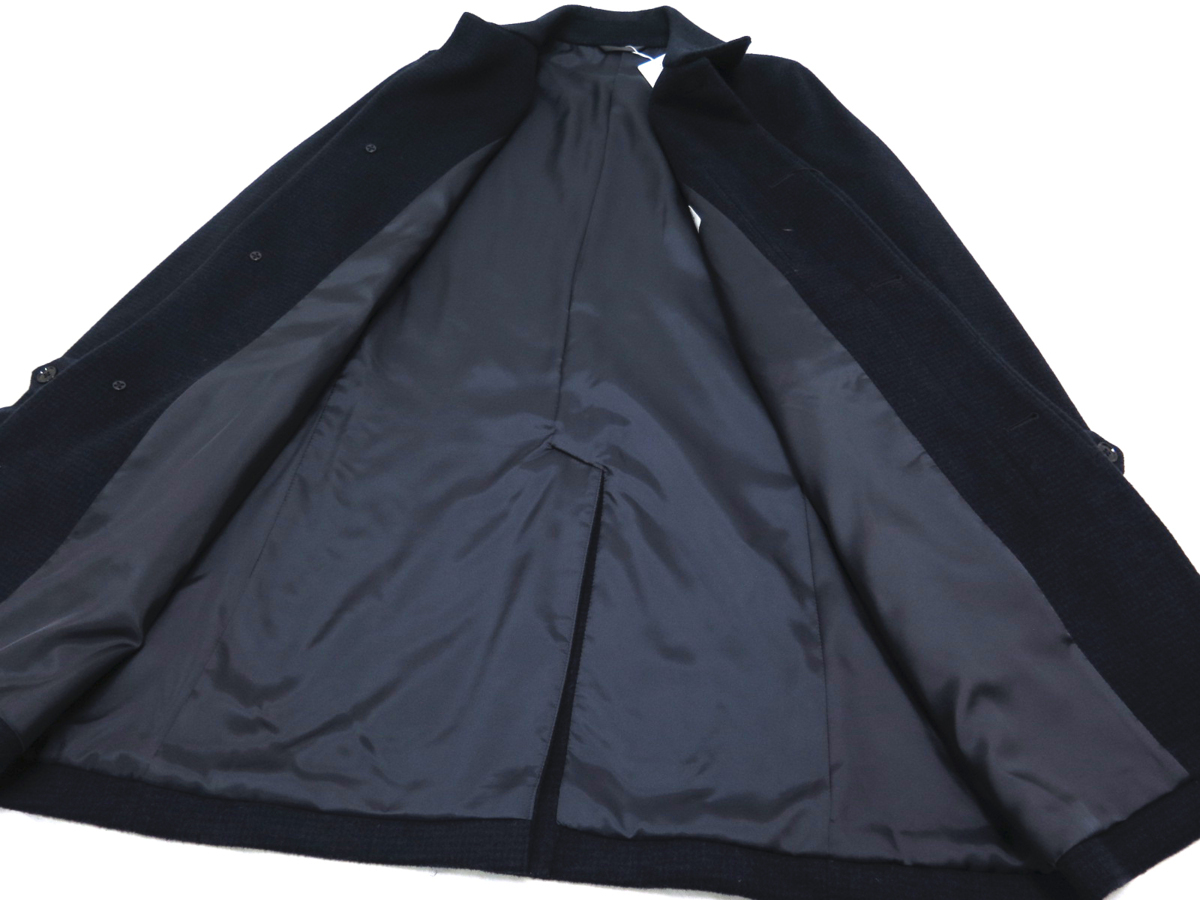 商品名●ヒロココシノ HIROKO KOSHINO●新品 ウールビーバー 千鳥柄 ステンカラーコート 濃紺/M