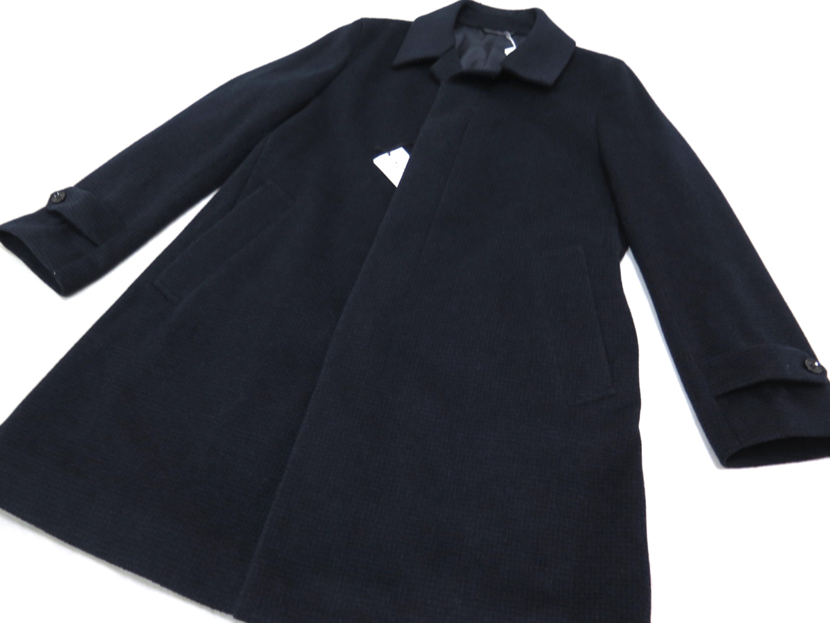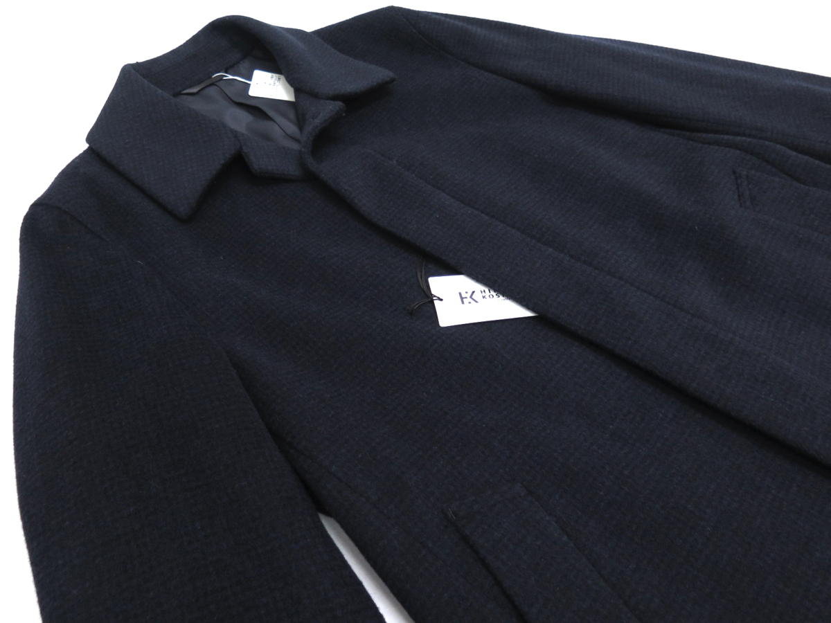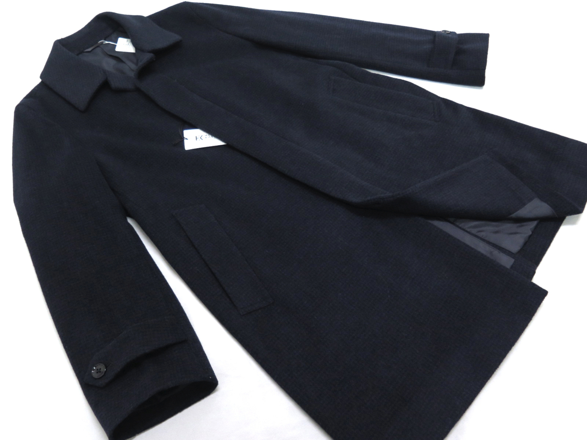 商品名●ヒロココシノ HIROKO KOSHINO●新品 ウールビーバー 千鳥柄 ステンカラーコート 濃紺/M
