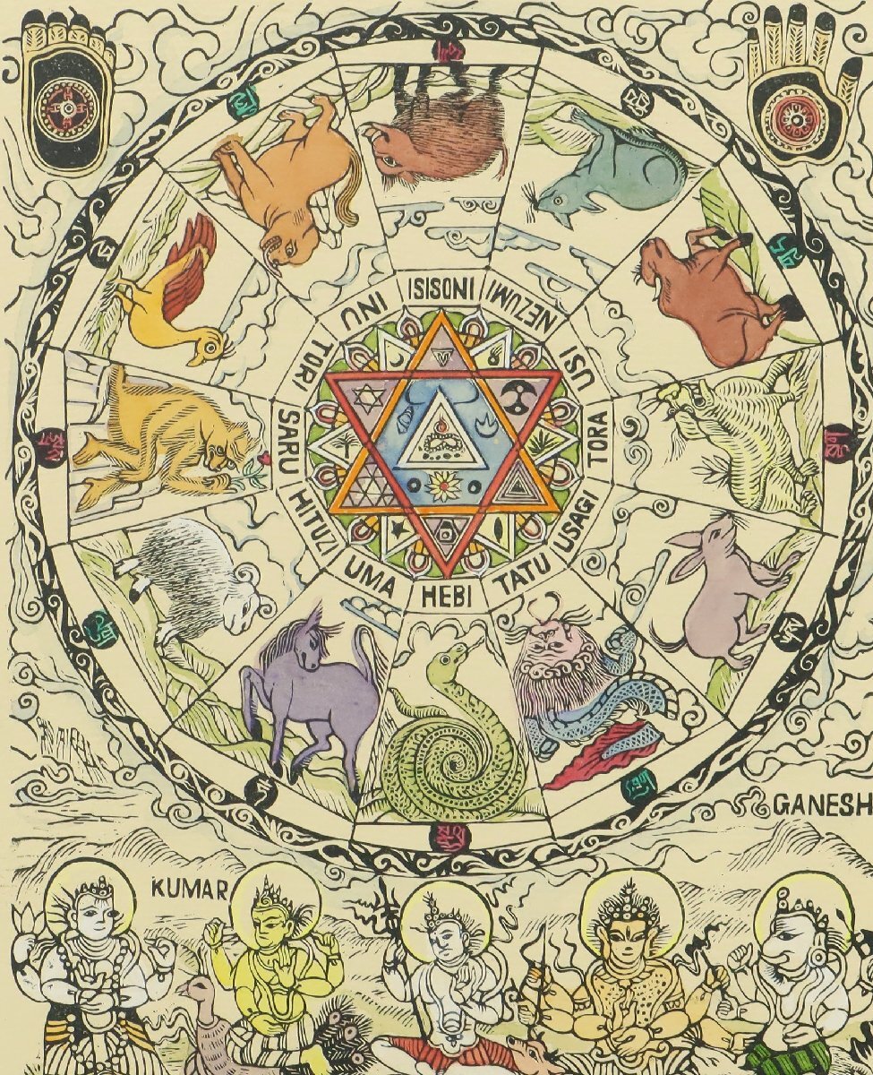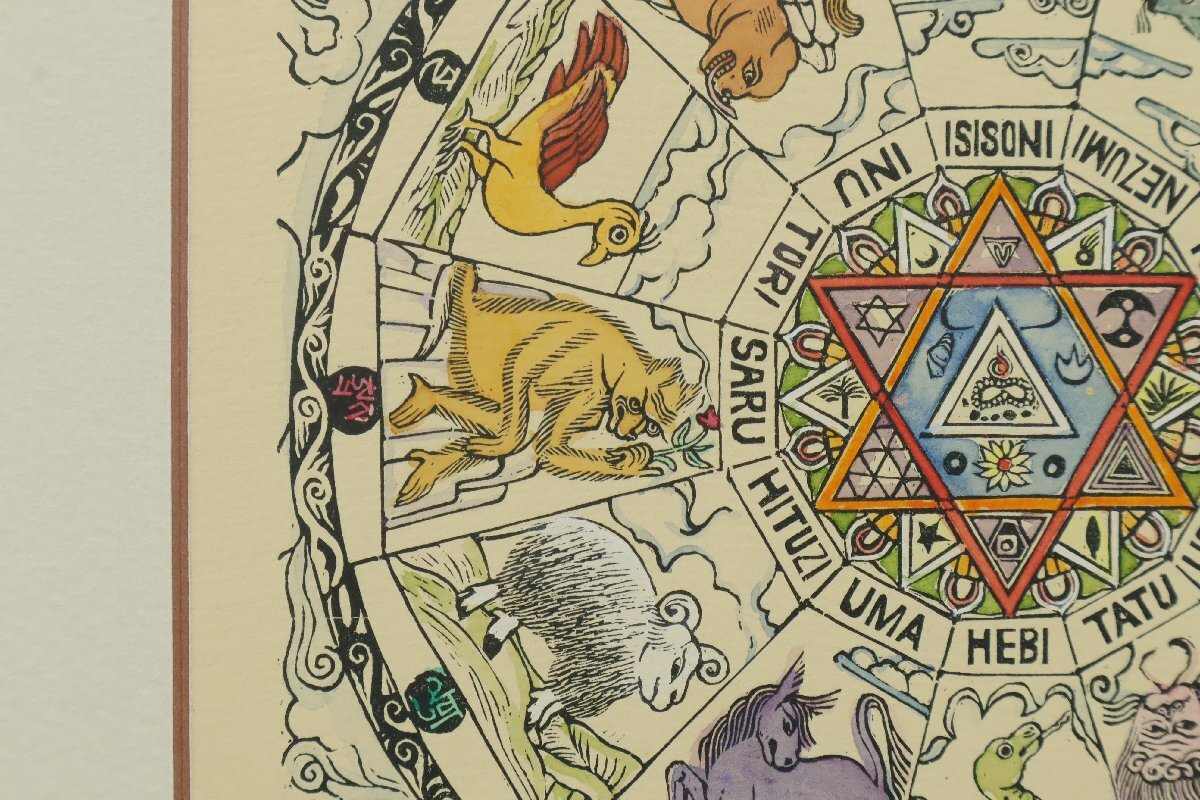 | ・栗田政裕「十二支曼荼羅」14/70 1984年制作 版画 額装品 /干支 仏画 | ||||||||||