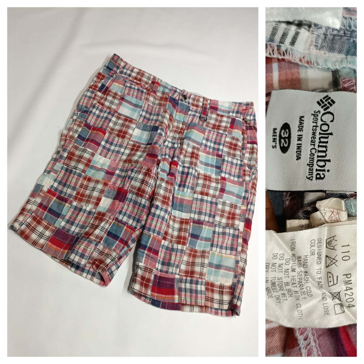 Columbia Sportswear Company コロンビア インド製 チェック柄 パッチワーク ハーフパンツ ショーツ 短パン W32 約85cm