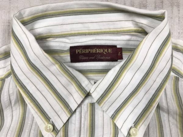 PERIPHERIQUE ペリフェリック レトロ トラッド オールド 古着 シアサッカー マルチストライプ ボタンダウン 半袖ドレスシャツ メンズ L です。