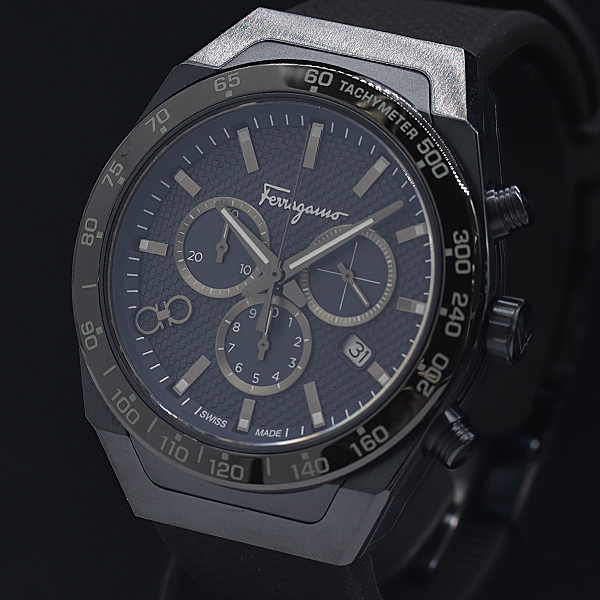 1円 保/箱付 稼働 良品 フェラガモ サルヴァトーレ・フェラガモ ブラック文字盤 QZ メンズ腕時計 3215300 9OKT KTU