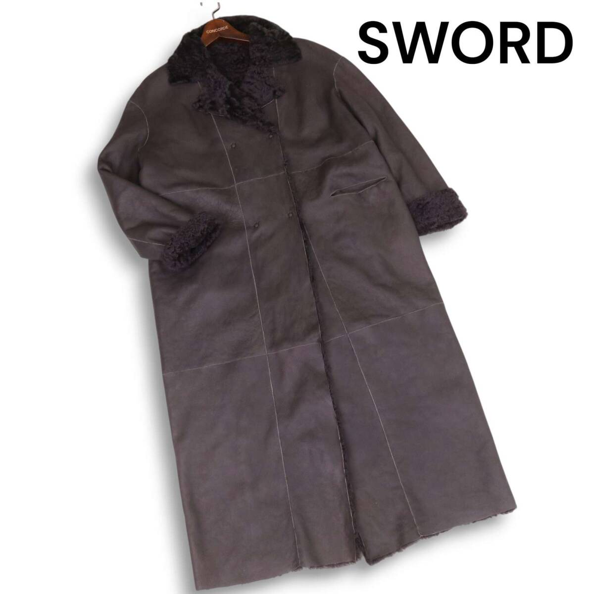 イタリア製★ s.w.o.r.d SWORD 秋冬 毛皮♪ リアル ムートン ロング コート Sz.44 レディース 大きいサイズ