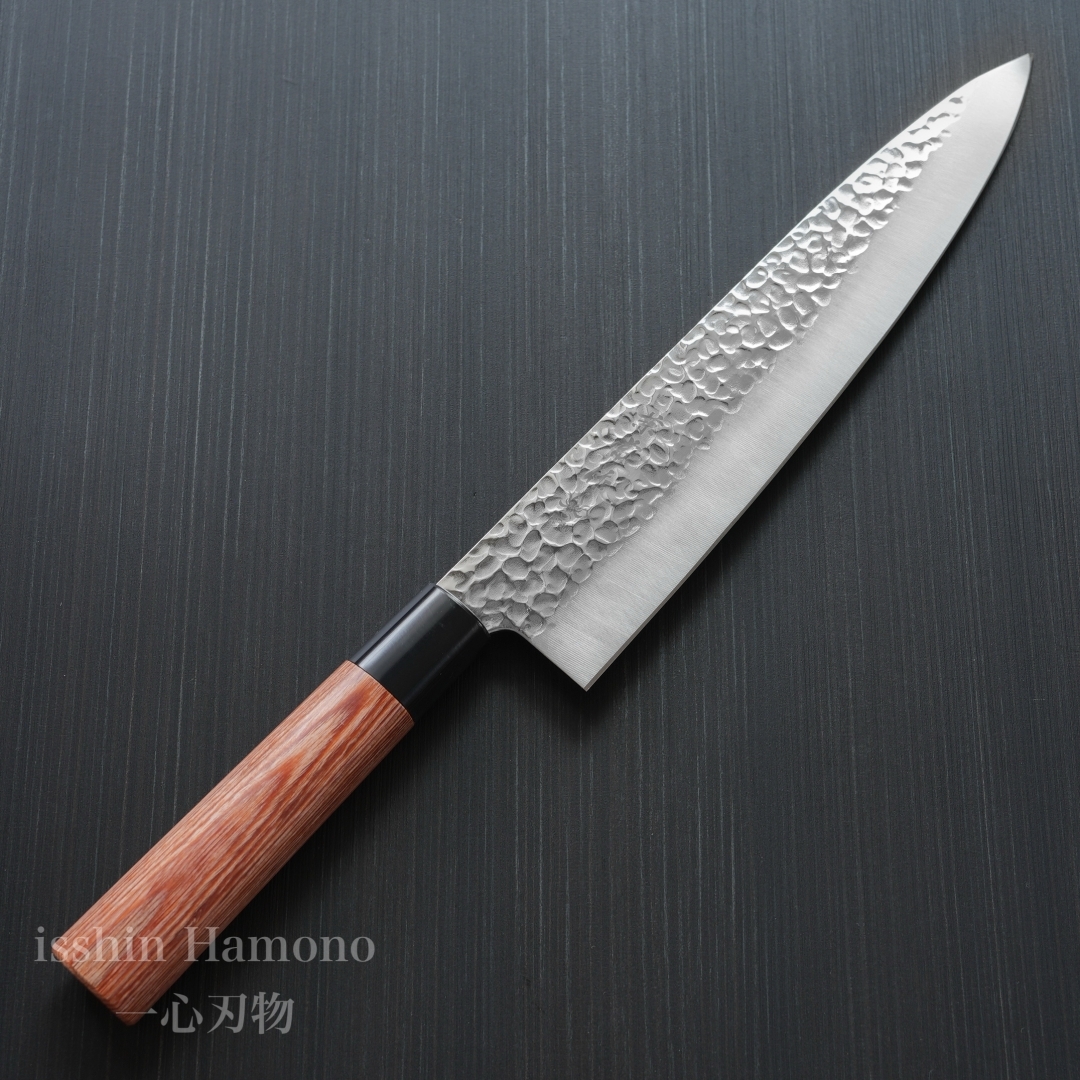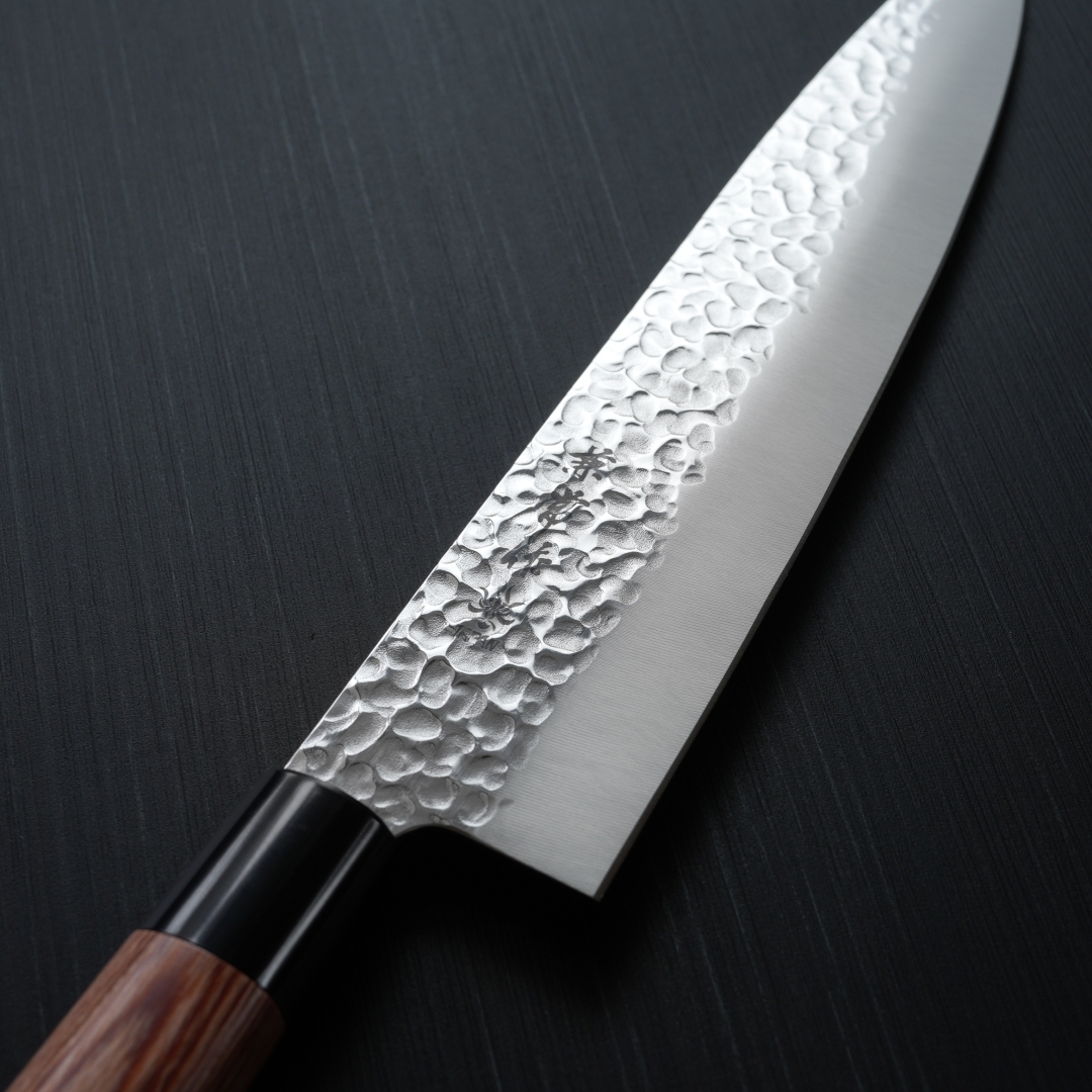 槌目模様は高級感を漂わせているだけでなく、切った食材の切り離れが良い役割も果たします。