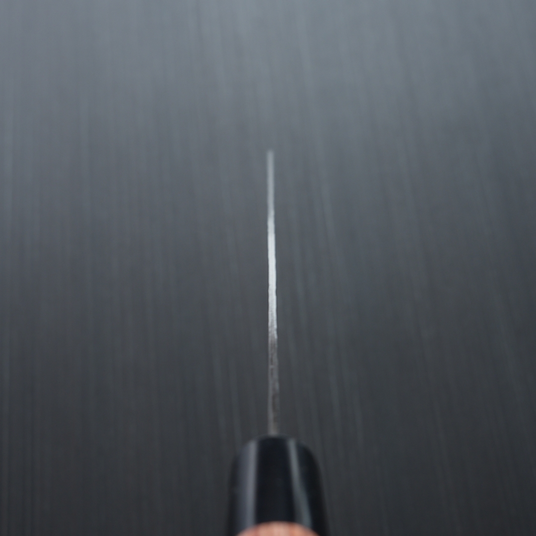 心材の刃はステンレス製のモリブデンバナジウム鋼で、モリブデンやバナジウムの添加されていないステンレスよりもさらに切れ味の持続性と鋭さが優れています。ステンレスのため、鋼のように錆びを気にする必要がありません。