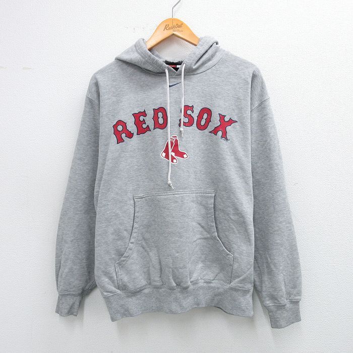 【商品名】 L★古着 ナイキ NIKE 長袖 スウェット メンズ 00年代 00s MLB ボストンレッドソックス グレー 霜降り メジャーリーグ ベースボール 野球【spe】