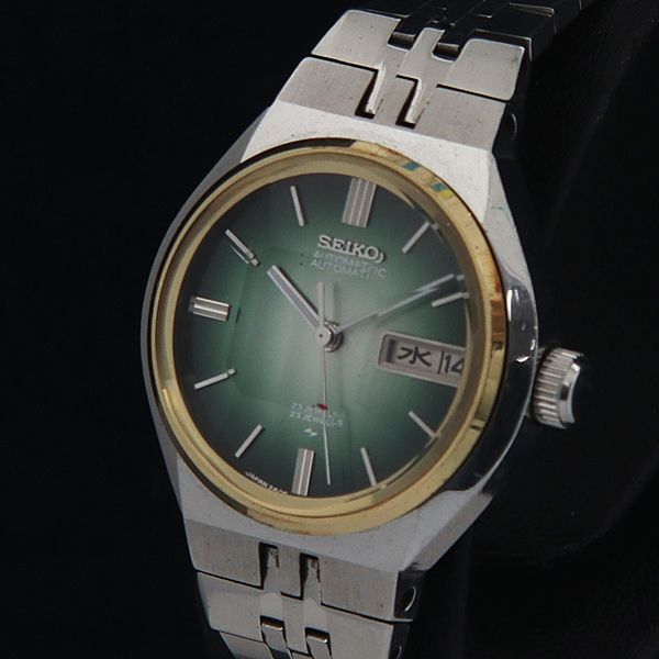 セイコー AT/自動巻 23石 2406-0030 カットガラス ラウンド デイデイト グリーン文字盤 レディース腕時計 INB 2000000 NSK