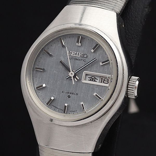 セイコー AT/自動巻 2706-0110 ブルー文字盤 21石 デイデイト ラウンド レディース腕時計 IKE