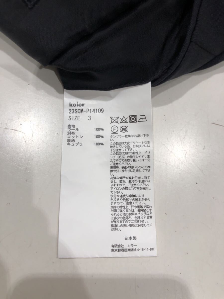 ts20250913【kolor】23SS SUPER120STROPICAL TAPERED PANTS カラー スラックスパンツ 23SCM-P14109 ウール ボトムス SIZE 3 ss