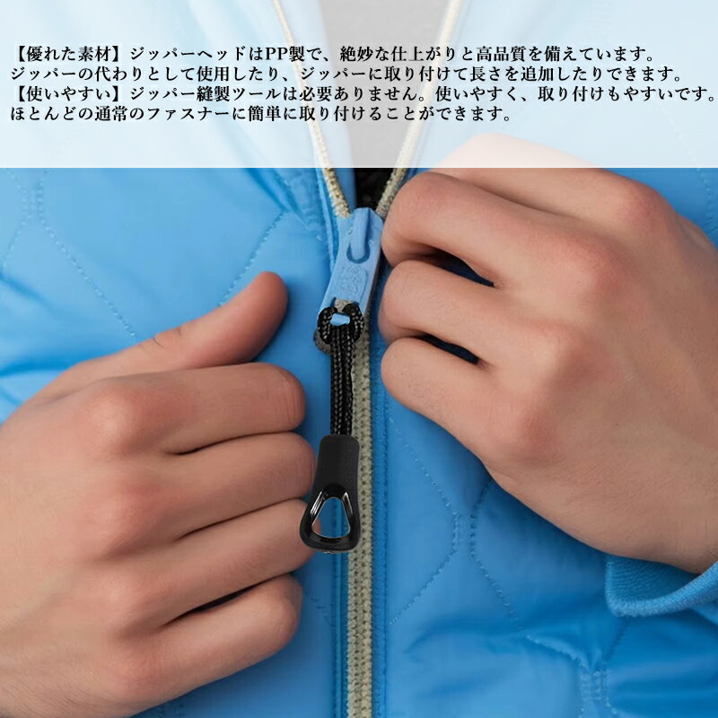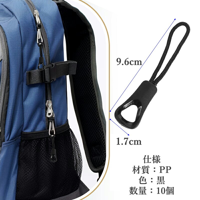 仕様:材質:PP 色:黒 サイズ9.6cm×1.7cm 数量:10個【優れた素材】ジッパーヘッドはPP製で、絶妙な仕上がりと高品質を備えています。ジッパーの代わりとして使用したり、ジッパーに取り付けて長さを追加したりできます。