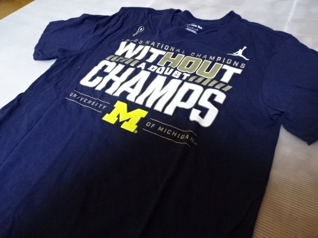 激レア USA購入【NIKE】製 USカレッジ【Michigan Wolverines】アメフト【2023 NATIONAL CHAMPIONS】ロゴプリントTシャツUS S 中古良品