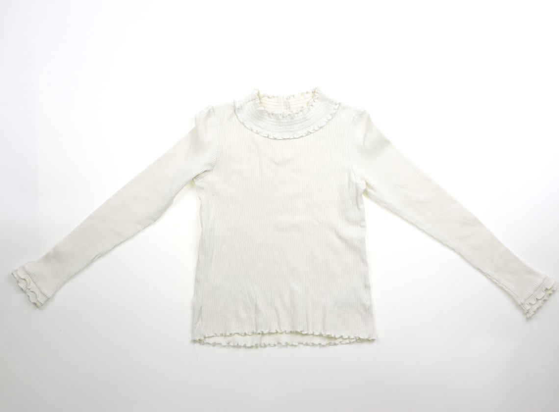リブカットソー地・フリルが可愛らしいです。糸の飛び出しがありますが目立つ汚れはありません。まだお使いいただけそうです。