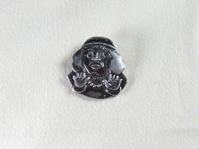 即決品。1969年に放映されたテレビ番組・巨泉・前武ゲバゲバ90分!のバッジ。クレージーキャッツのハナ肇が扮するアッと驚く為五郎。裏はピンで、渡辺プロダクションとシスコのエンボスあり。