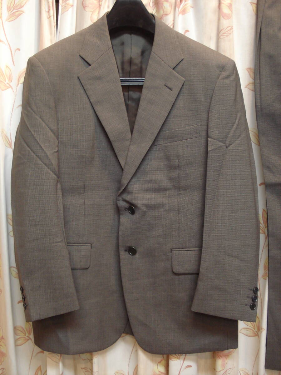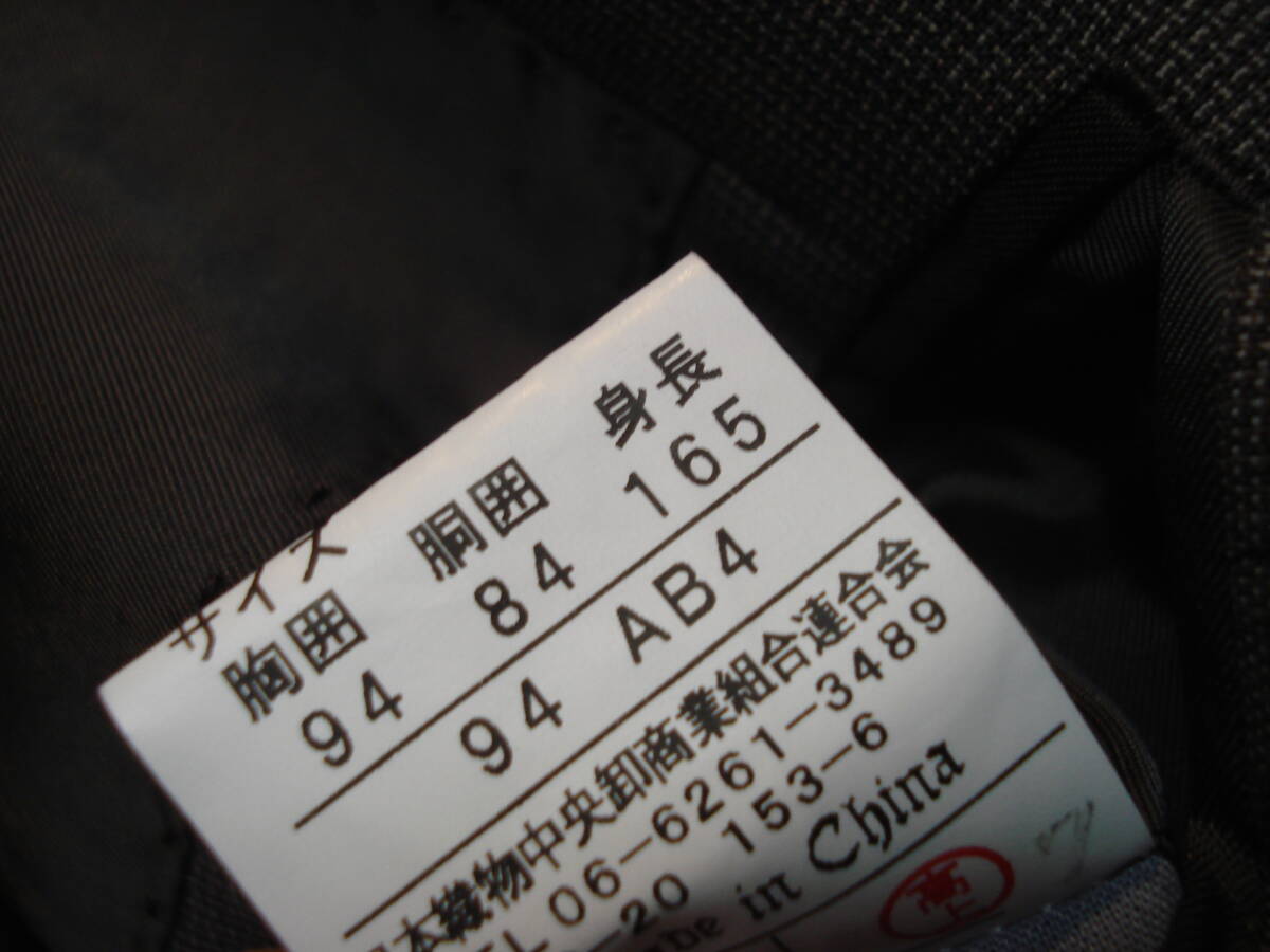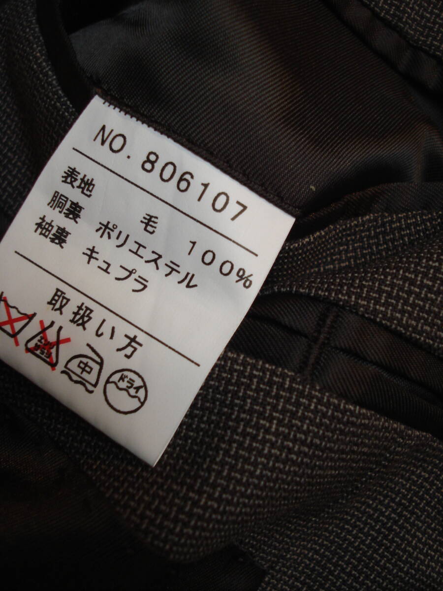 送料無料!美品!秋・冬もの!新品同様!ズボン2本付き!AB4サイズ!ウェスト:86cm!定番シングルスーツ!毛:100%!です。ズボン1本、「新品・未使用・タグ付き!」です。。色は、とても高級感あるオシャレな色の、秋・冬もの!ウェスト:86cm!定番シングルスーツ!ズボン2本付き!です。表示サイズは、「AB4サイズ!」で、「身長:165cm・胸囲:94cm」で、素人寸サイズは、約「肩幅:50cm・着丈:74cm・袖丈:59cm・脇下幅:58cm・ウェスト:86cm・股下:72cm・ズボン裾幅:21cm」です。股下寸法:72cmですが、折り返し部が、約8cmありますので、最大股下寸法:約78cm位まで可能です。。ウェスト部の生地の余生地が、約7cmありますので、あと約5cm位はウェストを出す事が可能です。ズボンのタックは、片側2タックの合計4タックです。ベントとは上着の背面下部の切れ目の事です。何もありませんので、「ノーベント!」です。上着の背中裏地は、「背抜き!」です。素材は、「毛:100%」です。。