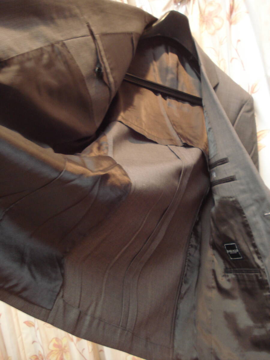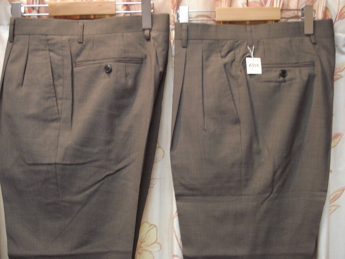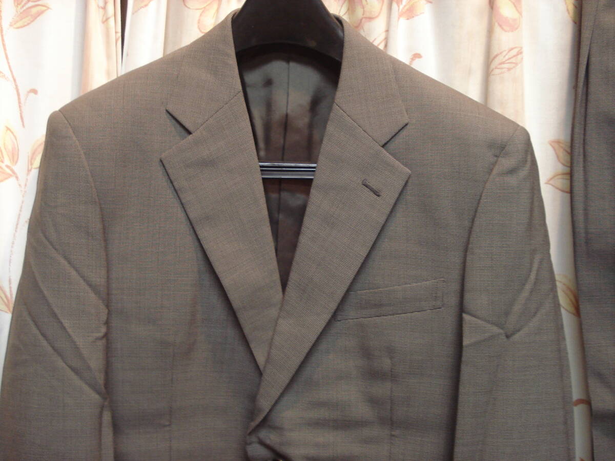 送料無料!美品!秋・冬もの!新品同様!ズボン2本付き!AB4サイズ!ウェスト:86cm!定番シングルスーツ!毛:100%!です。ズボン1本、「新品・未使用・タグ付き!」です。。色は、とても高級感あるオシャレな色の、秋・冬もの!ウェスト:86cm!定番シングルスーツ!ズボン2本付き!です。表示サイズは、「AB4サイズ!」で、「身長:165cm・胸囲:94cm」で、素人寸サイズは、約「肩幅:50cm・着丈:74cm・袖丈:59cm・脇下幅:58cm・ウェスト:86cm・股下:72cm・ズボン裾幅:21cm」です。股下寸法:72cmですが、折り返し部が、約8cmありますので、最大股下寸法:約78cm位まで可能です。。ウェスト部の生地の余生地が、約7cmありますので、あと約5cm位はウェストを出す事が可能です。ズボンのタックは、片側2タックの合計4タックです。ベントとは上着の背面下部の切れ目の事です。何もありませんので、「ノーベント!」です。上着の背中裏地は、「背抜き!」です。素材は、「毛:100%」です。。