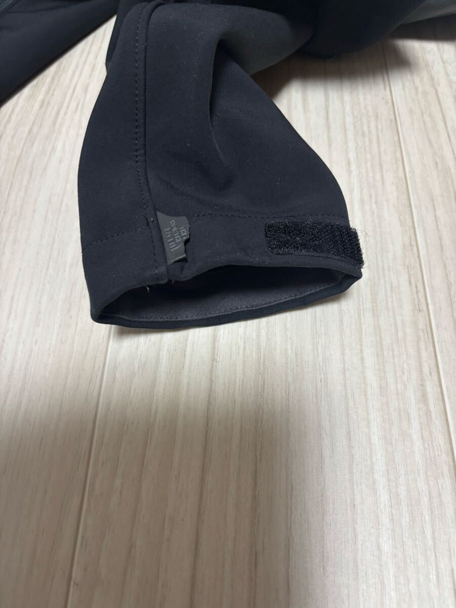 左手の袖口を絞るマジックが取れてありません。