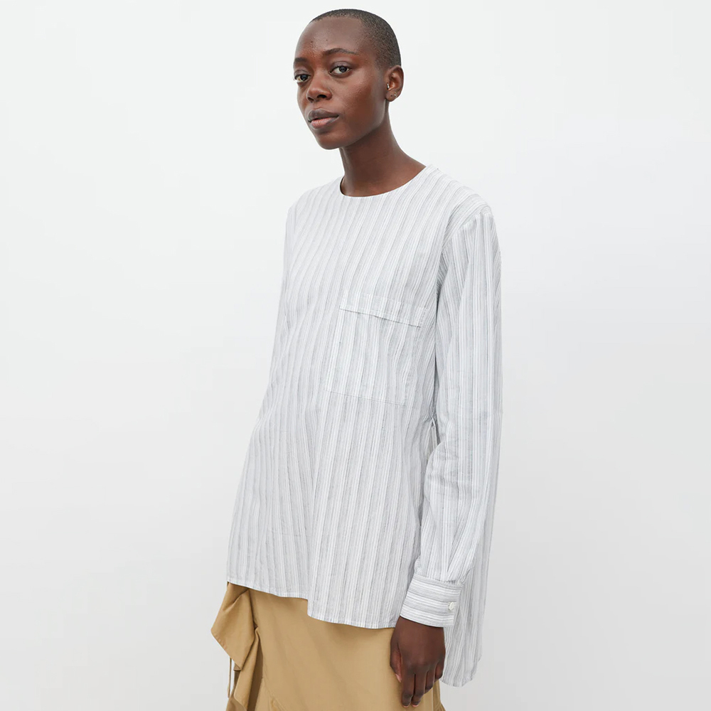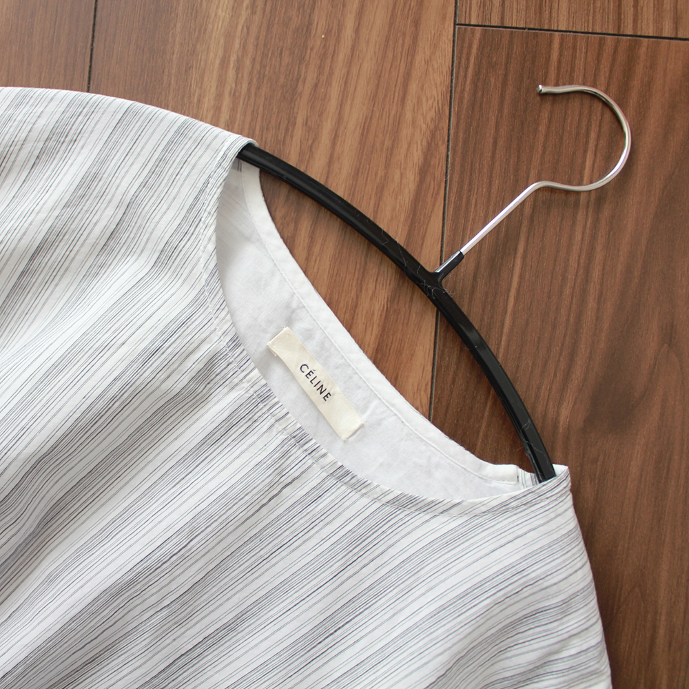 CELINE/セリーヌ/18SS/ピンストライプノーカラーブラウス