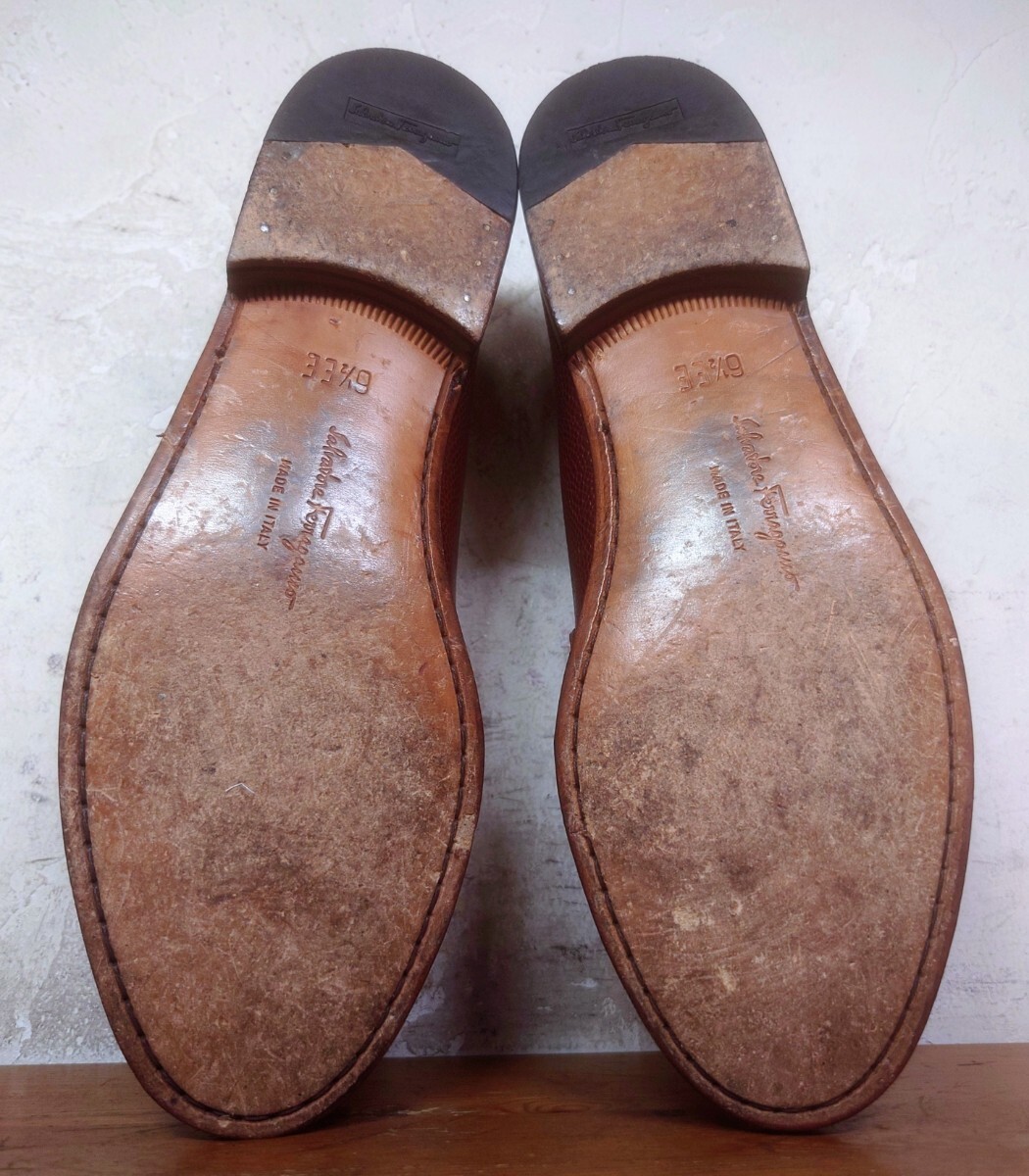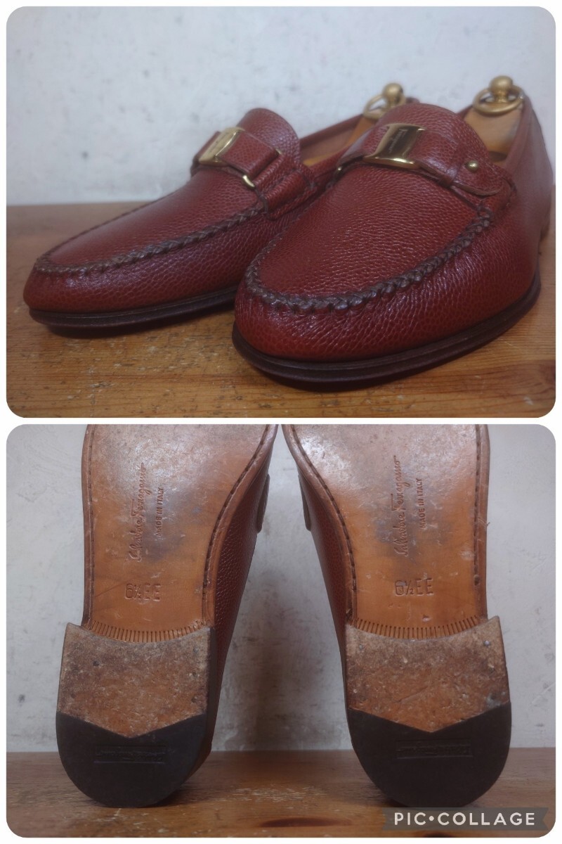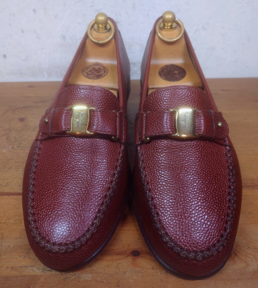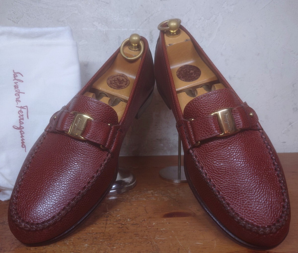 【極美品/送料無料】ITALY製 Salvatore Ferragamo/サルヴァトーレフェラガモ VARO アンラインド ストラップローファー SIZE:61/2EE 24.5cm相応 です。