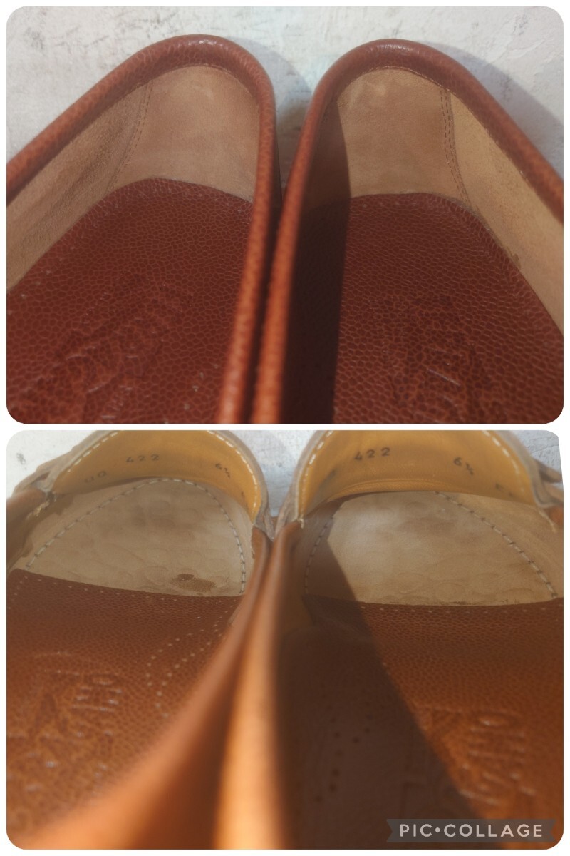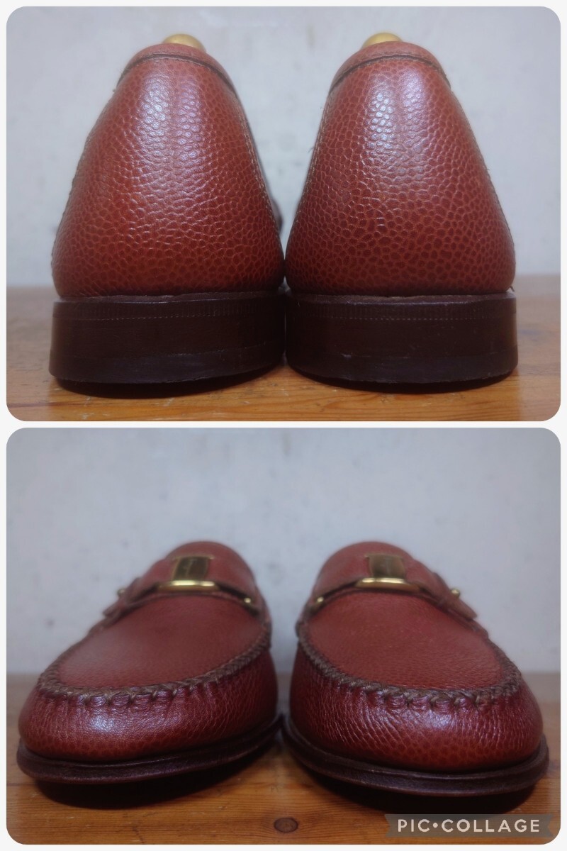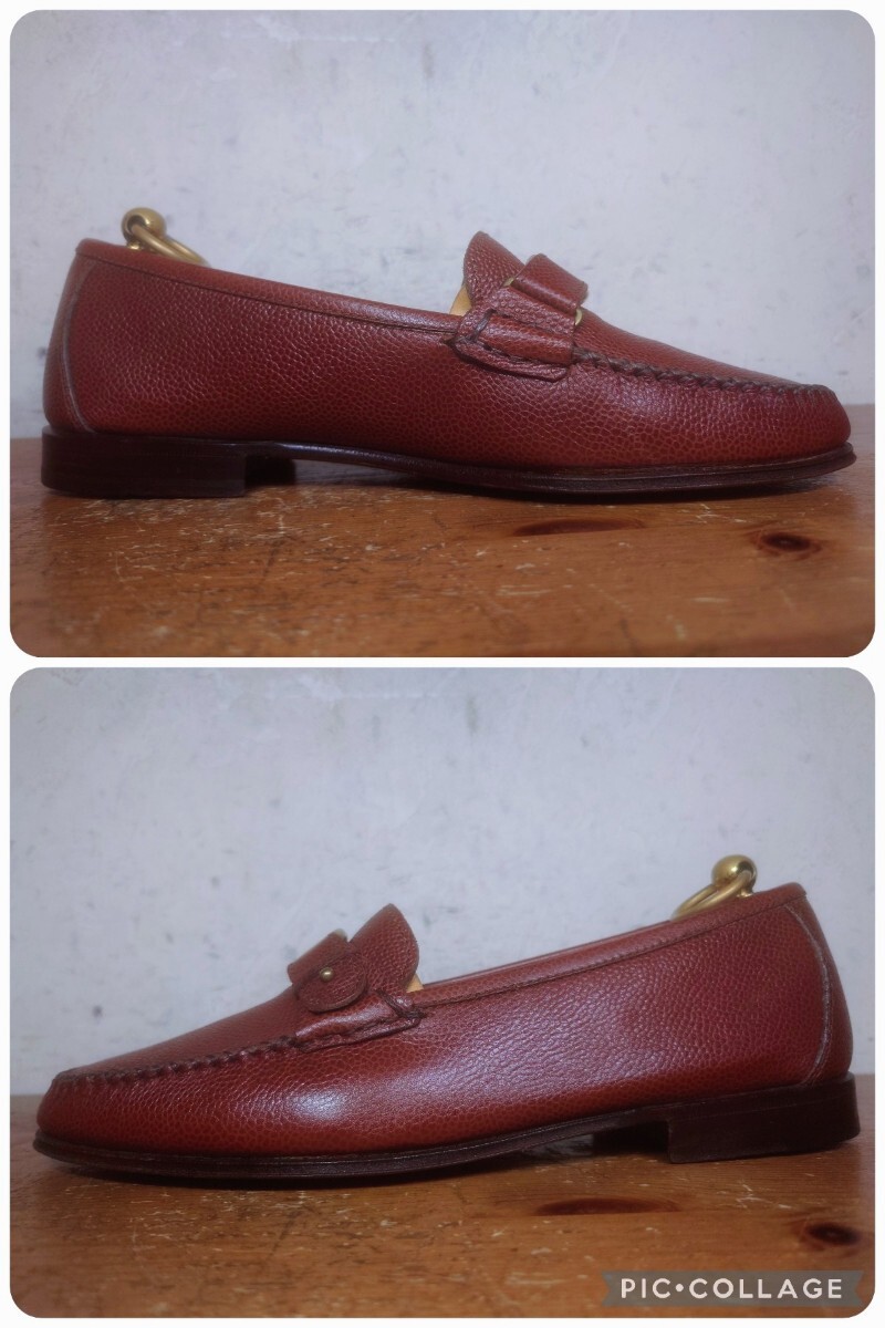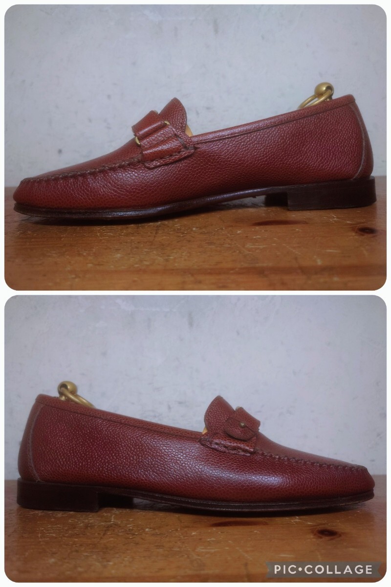 アッパーは風合い豊かな上質なグレインレザー、ゴールドのプレートがアクセントになったデザインが魅力の一足。