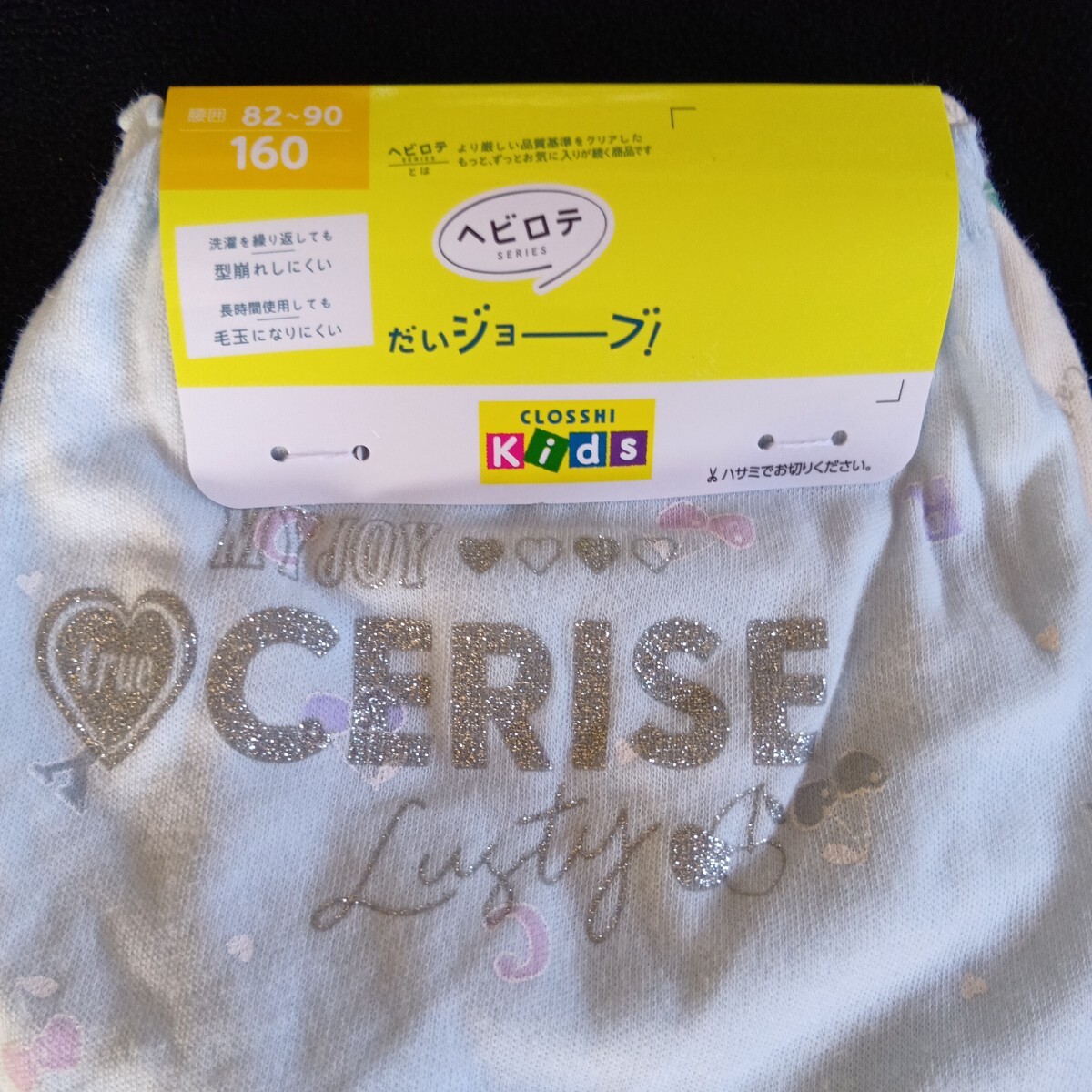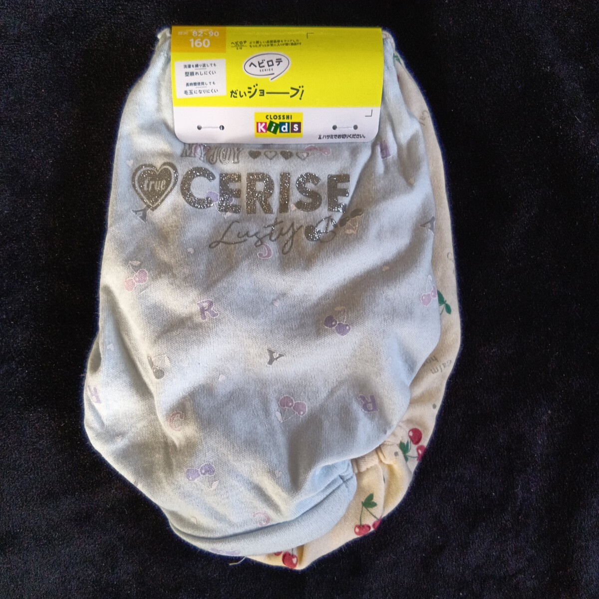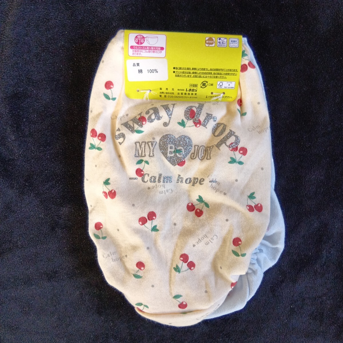 女児 ガールズインナー 薄水色地にサクランボ・英字模様&クリーム地に赤さくらんぼ・ハート・英字模様のショーツ 2枚組 160サイズ