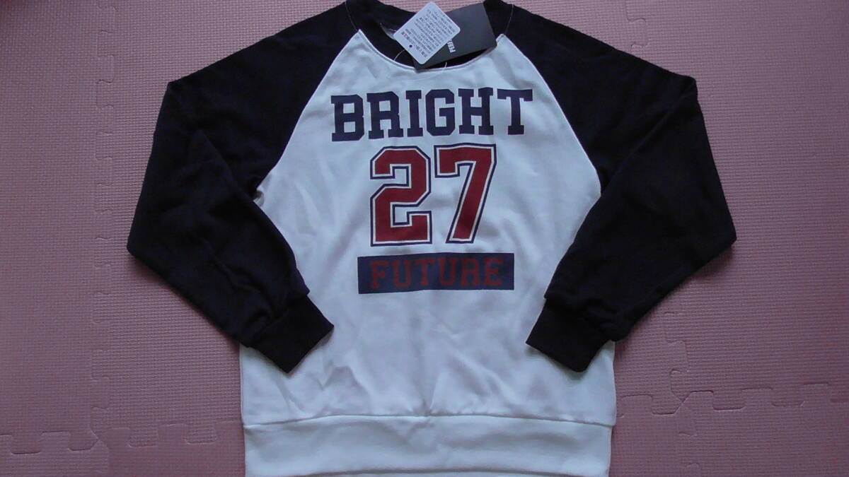新品 140 長袖トレーナー 白色 紺 カレッジロゴ風 ラグラン袖 かっこいい バックプリント 裏毛 小学生 男の子 秋物 130〜 送料無料